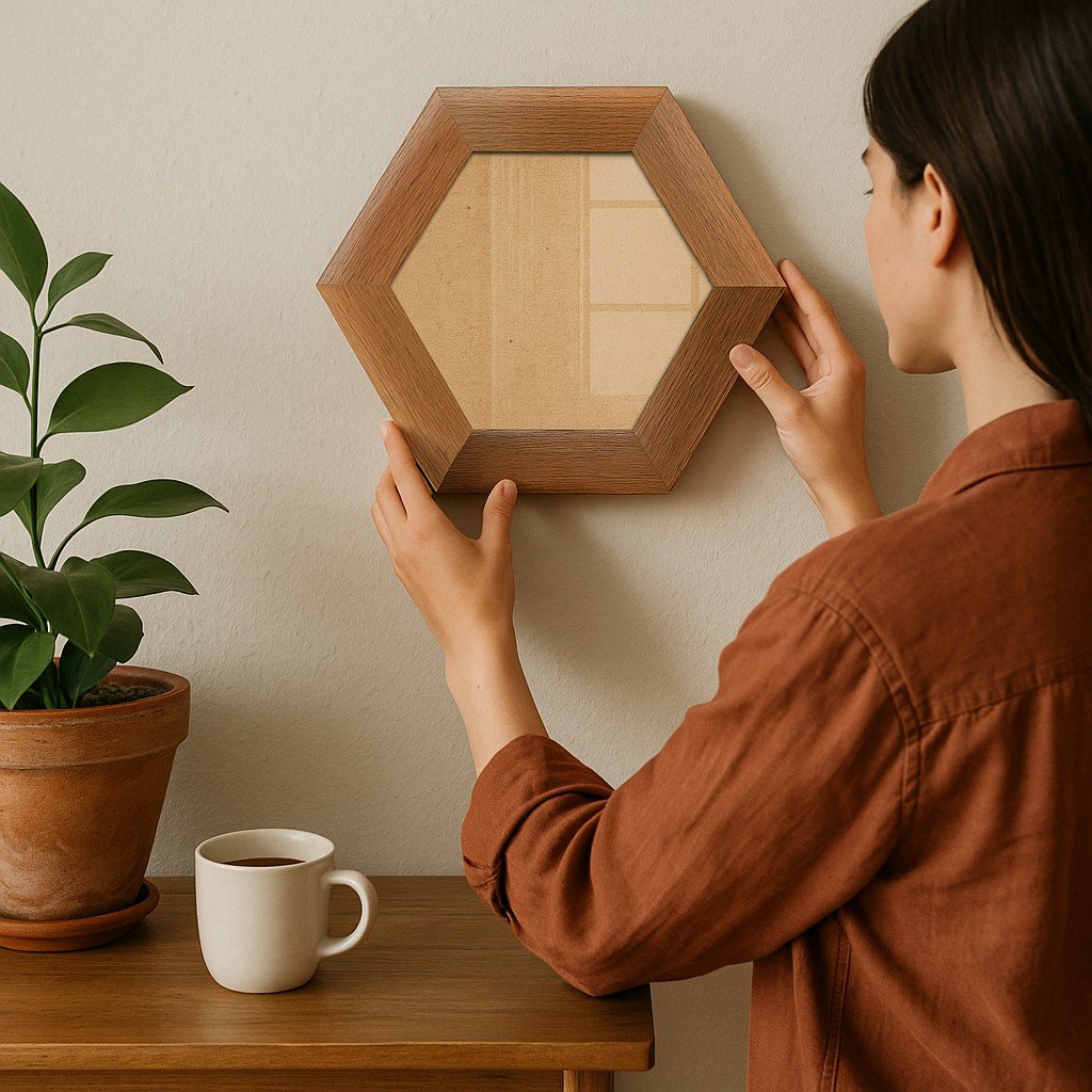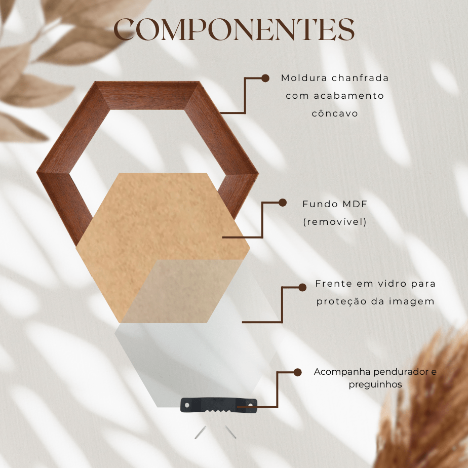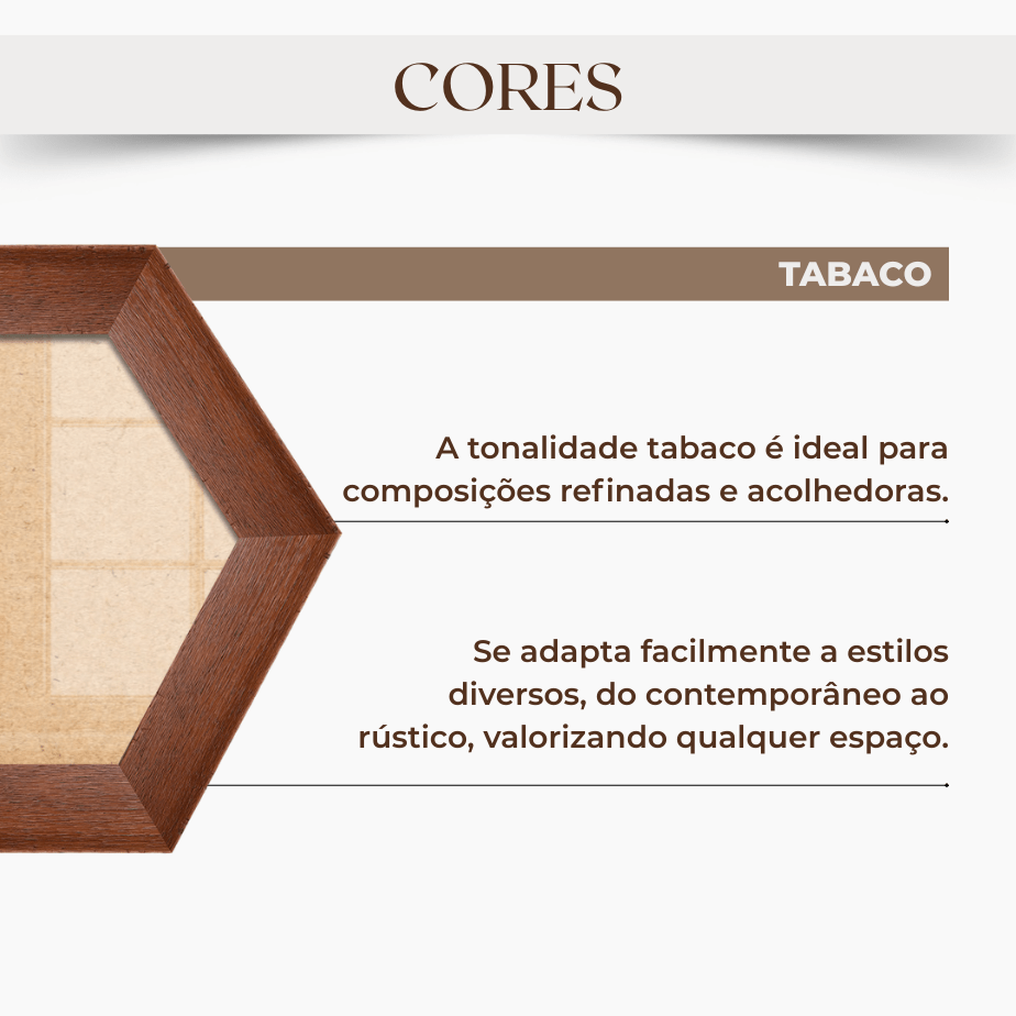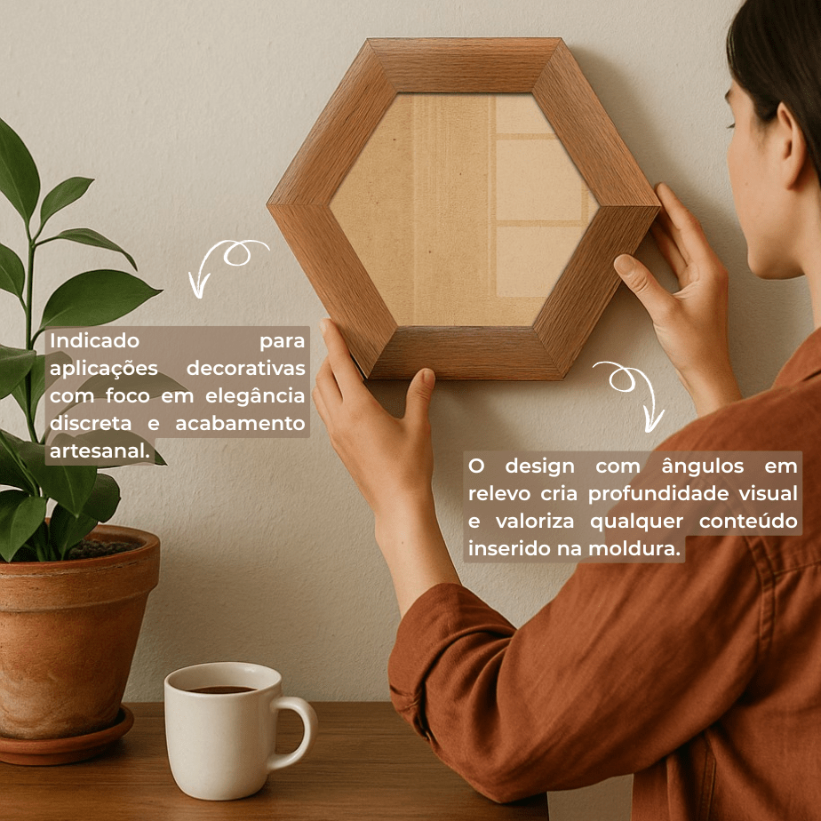 Moldura Hexagonal Chanfrada com Acabamento Côncavo Estilo Madeira Rústica Com Fundo MDF E Frente Em Vidro - 5x2,1