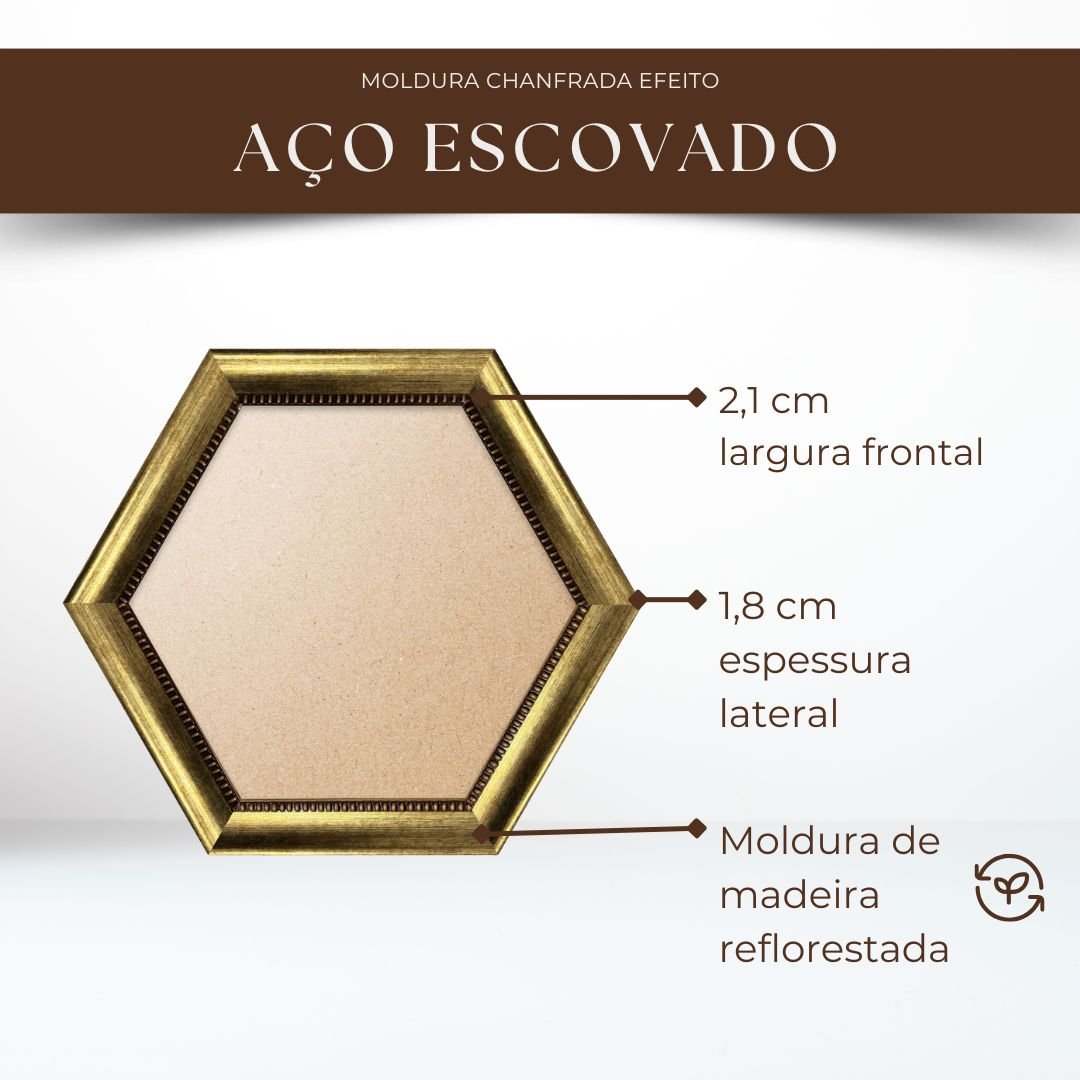Essa moldura não é apenas um objeto decorativo — é um convite ao olhar atento, à valorização dos detalhes e à criação de ambientes que refletem sua essência. Ideal para quem entende que cada canto da casa merece beleza com alma e sofisticação. O acabamento é metalizado, adicionando um brilho elegante e duradouro ao detalhe central da peça. Uma moldura resistente, leve e com acabamento refinado, ideal para quadros, pôsteres ou até para uso solo como peça decorativa.