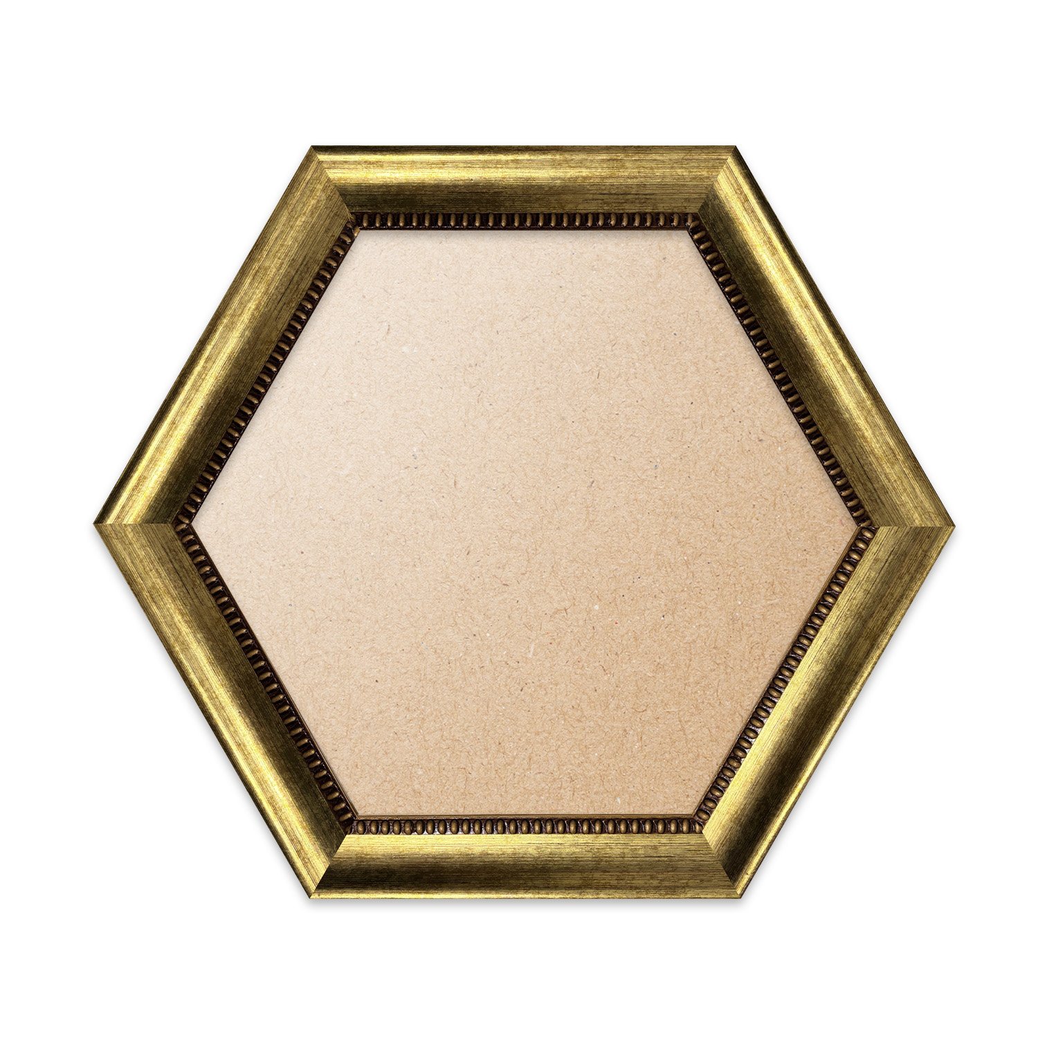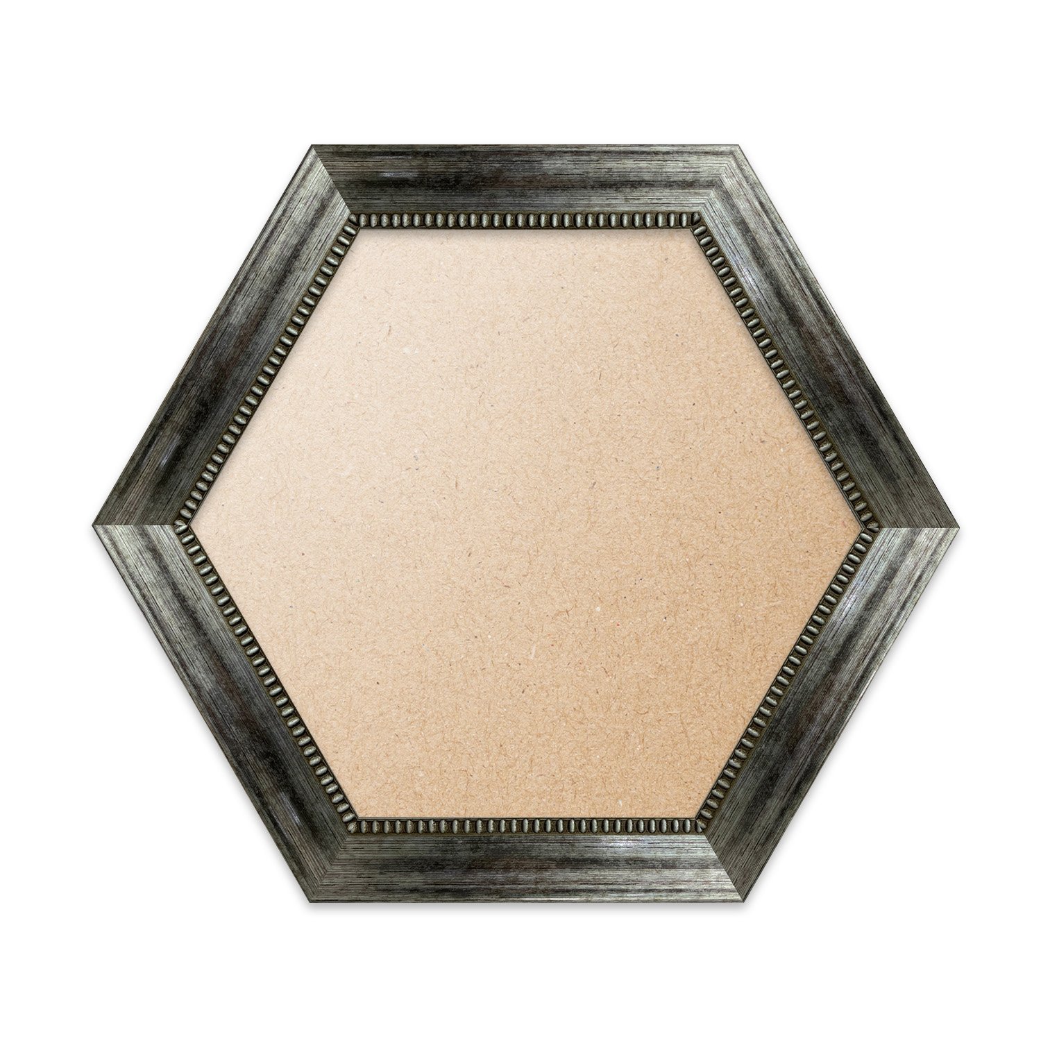 Moldura Hexagonal Com Moldura Chanfrada Com Padrão Oval Gravado Em Relevo E Efeito Aço Metal Escovado Com Fundo MDF e Frente Em PVC Antirreflexo - 4,6x2,1