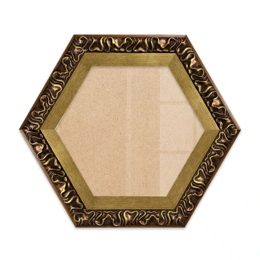 Moldura Hexagonal Efeito Escovado Fino e Gravação de Curvas Fluidas para Quadros e Fotos com Fundo Mdf e Frente em Vidro - 7,1x2,8