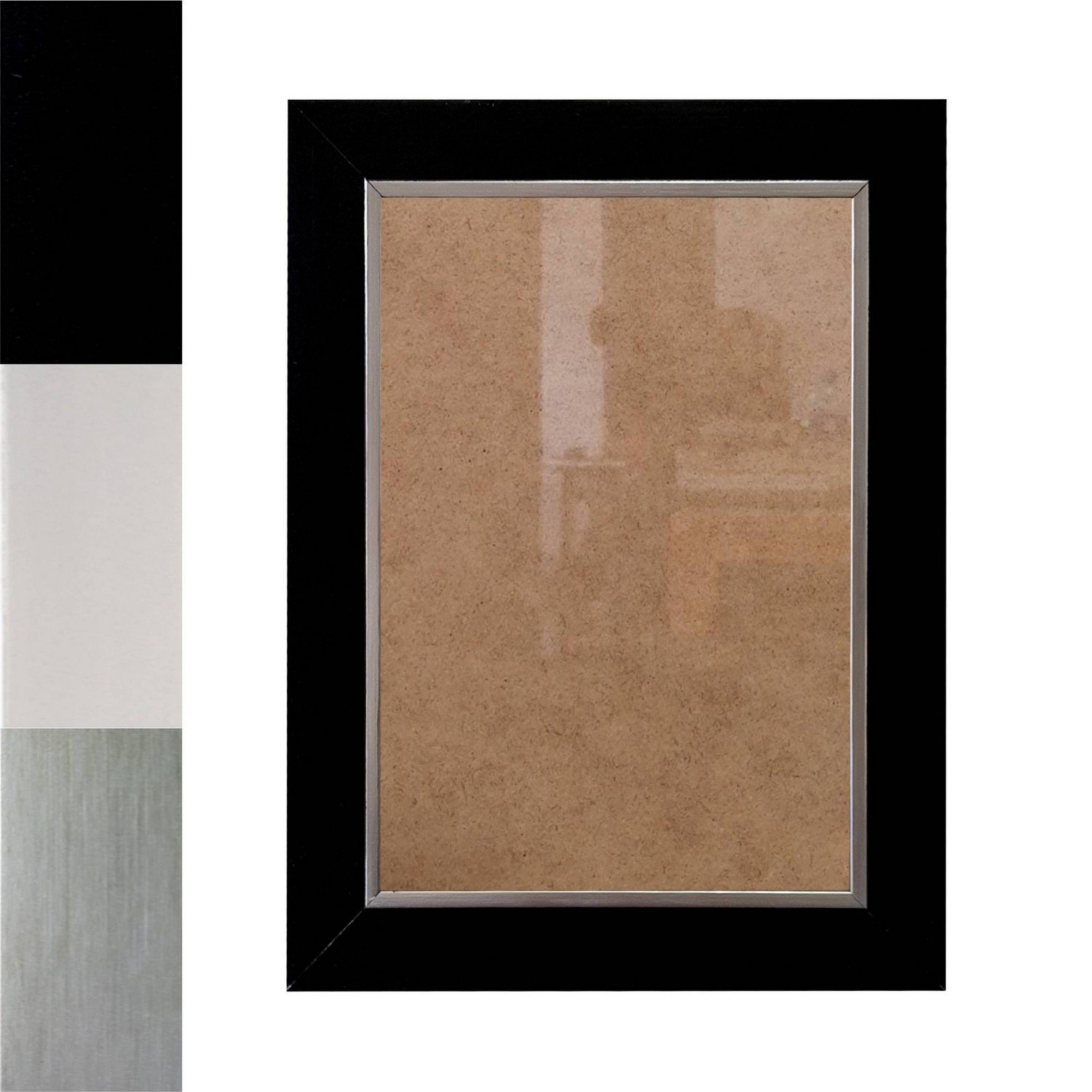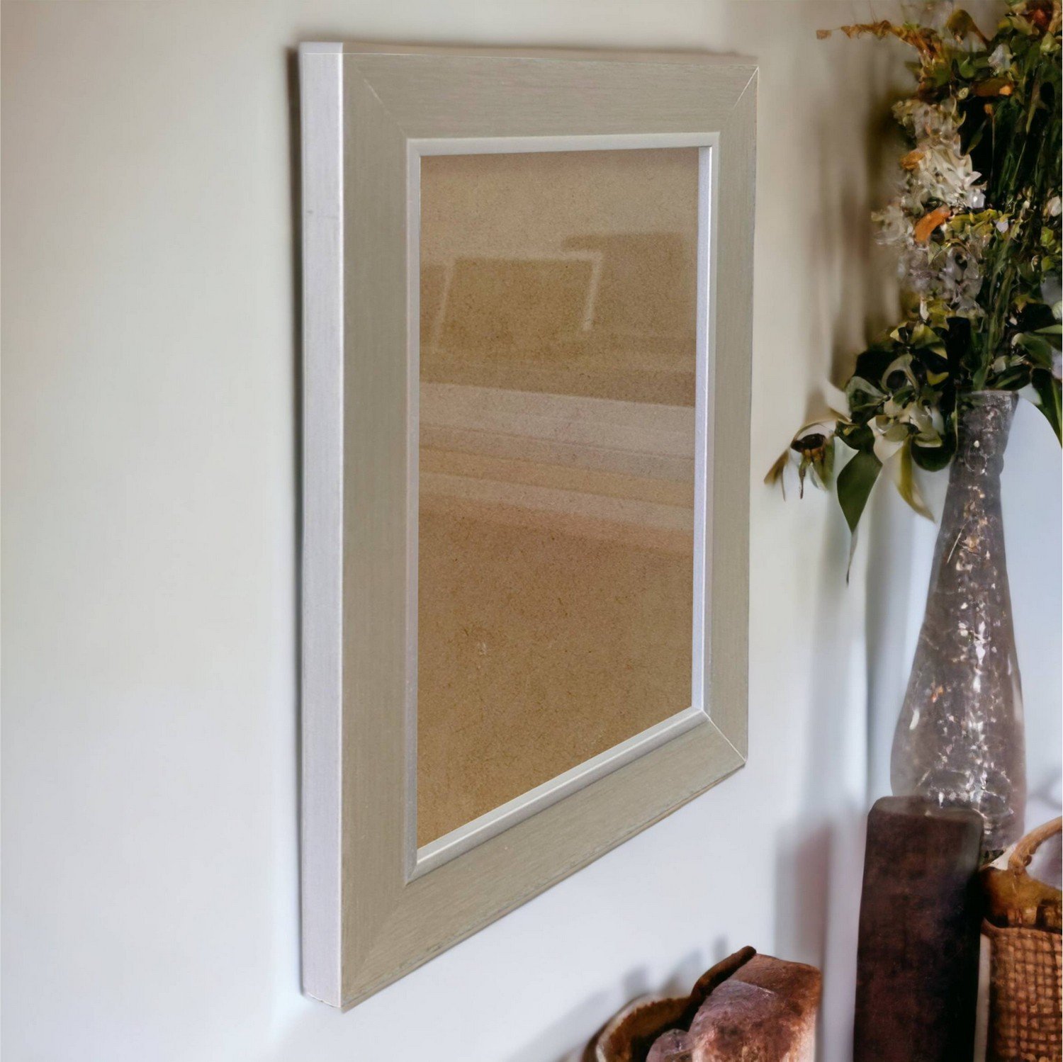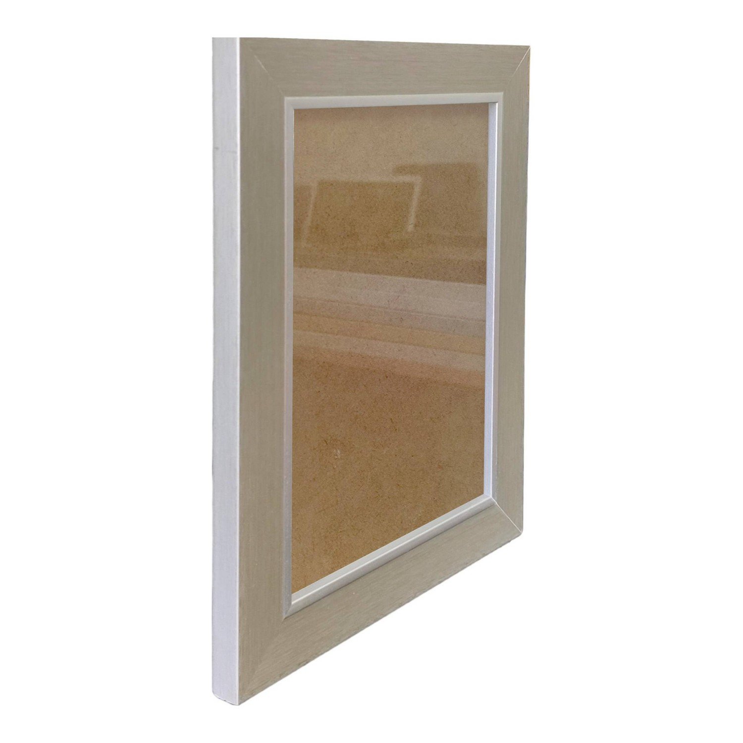 Moldura Laqueada Gesso com Filete Prata para Quadros e Fotos com Fundo MDF e Ps Cristal Transparente - 3x1,5