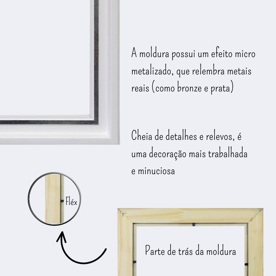 A Moldura possui detalhes e acabamentos únicos que trazem mais charme e sofisticação para qualquer ambiente. Essa peça é inigualável e deixará seu ambiente ainda mais incrível, realçando ainda mais a beleza da arte ou da fotografia nela inserida.