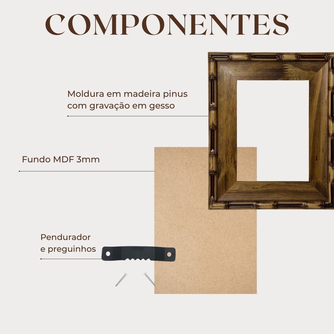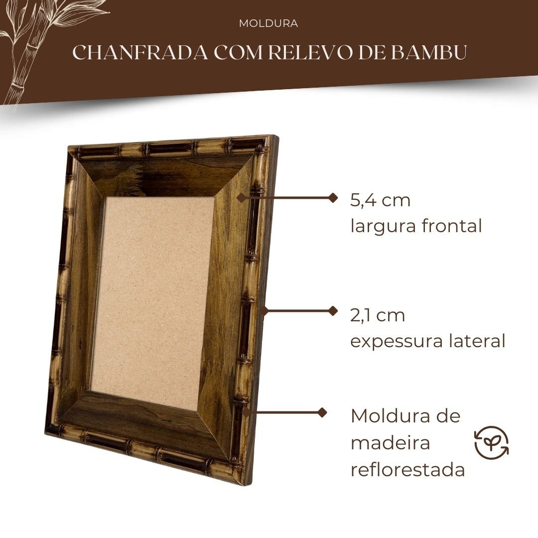 Imagine uma moldura que vai muito além da simples função de emoldurar um quadro. Feita em madeira pinus de origem sustentável, nossa moldura chanfrada com relevo de bambu traz à sua decoração uma elegância natural e uma textura única, que convidam o olhar a uma experiência sensorial delicada e acolhedora. O acabamento chanfrado confere profundidade e sofisticação minimalista, enquanto o relevo inspirado no bambu revela detalhes que remetem à harmonia e à leveza da natureza, tornando cada peça singular.