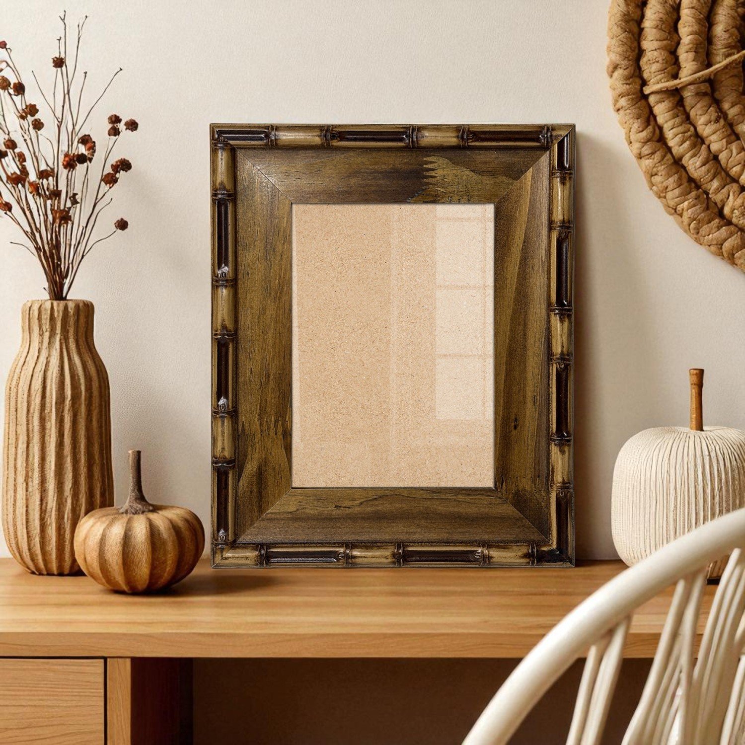 Moldura Personalizada Chanfrada com Relevo de Bambu em Madeira Pinus para Quadros e Fotos com Fundo Mdf e Frente em Acetato - 5,4x2,1