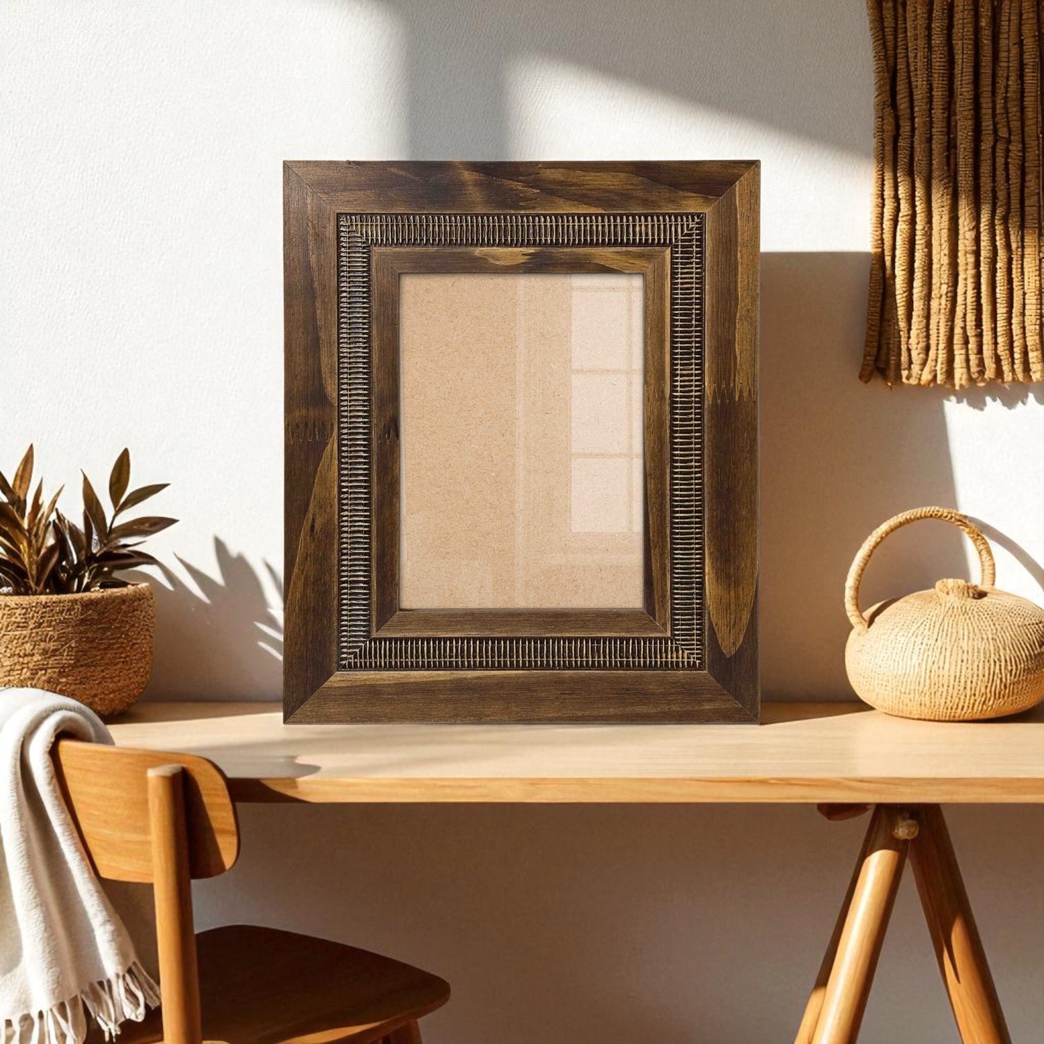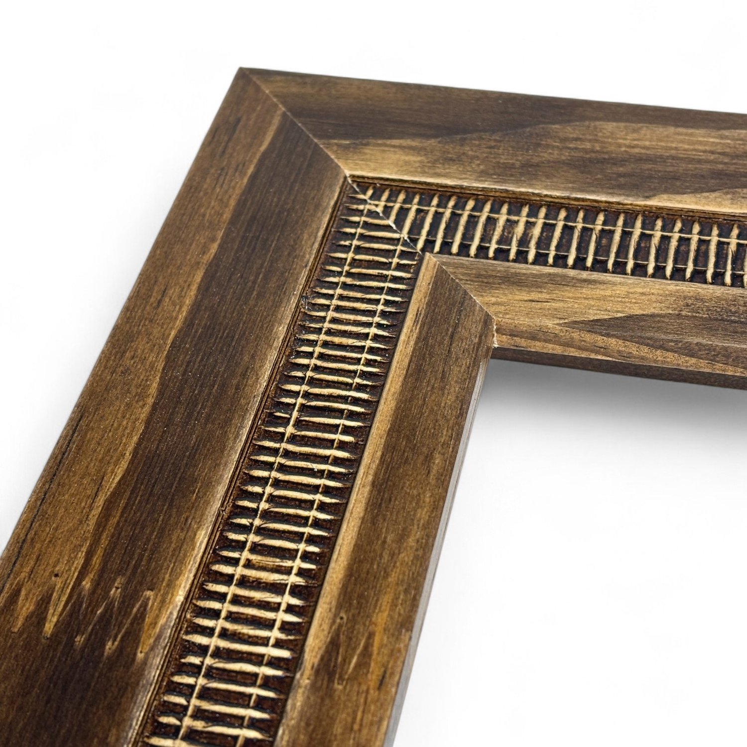 Autenticidade se revela nos detalhes, e essa moldura comprova isso com cada traço. Produzida em madeira pinus de origem reflorestada, ela apresenta um friso gravado em padrão linear que imprime textura, profundidade e sofisticação, sem exageros, mas com personalidade.