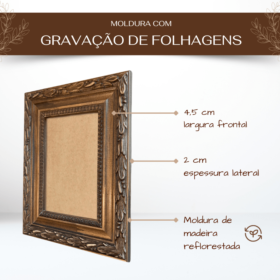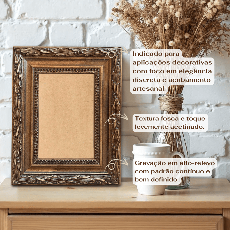 Moldura Personalizada Com Gravação De Folhagens Com Fundo MDF- 4,5x2