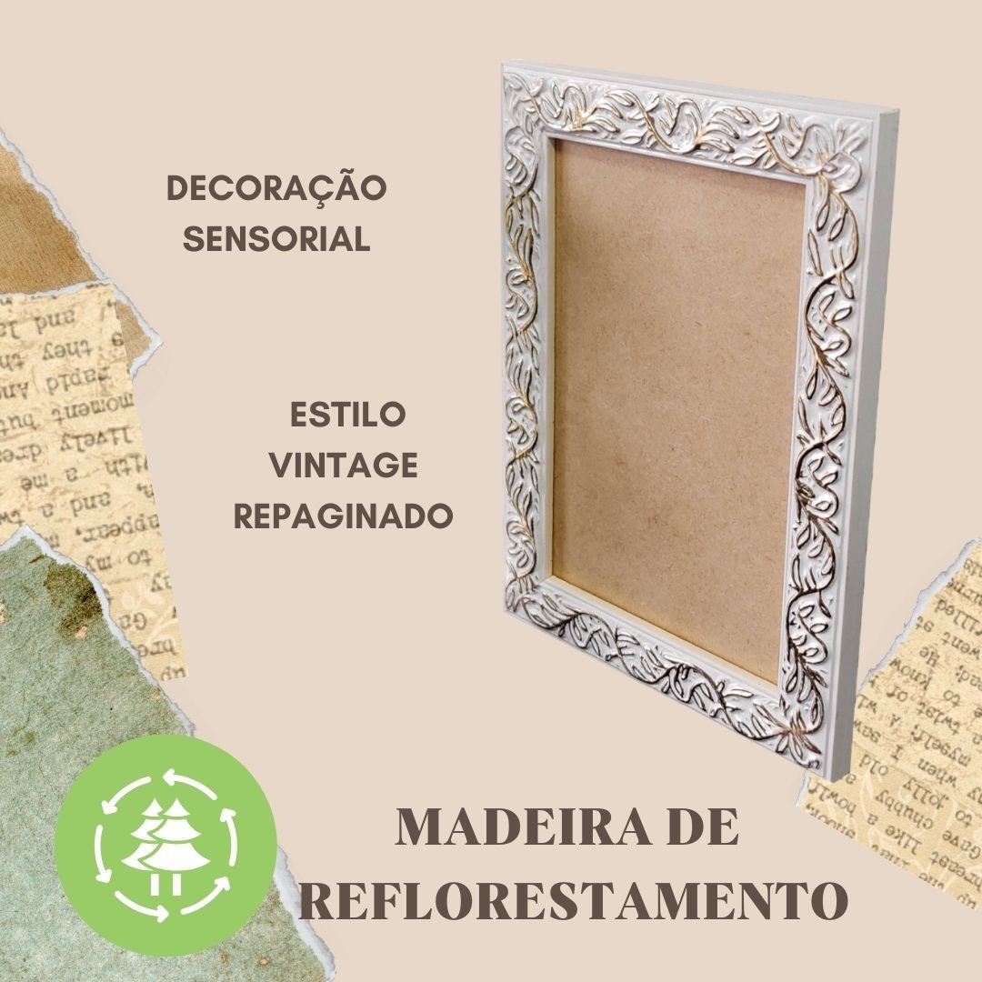 Moldura com Gravação para Espelhos ou Quadros de Parede. Essa moldura no estilo vintage repaginado possui gravação diretamento sobre a madeira, proporcionando detalhes únicos e em alto relevo. Sendo uma decoração sensorial, ela traz mais charme para qualquer ambiente, mostrando personalidade e sofisticação.