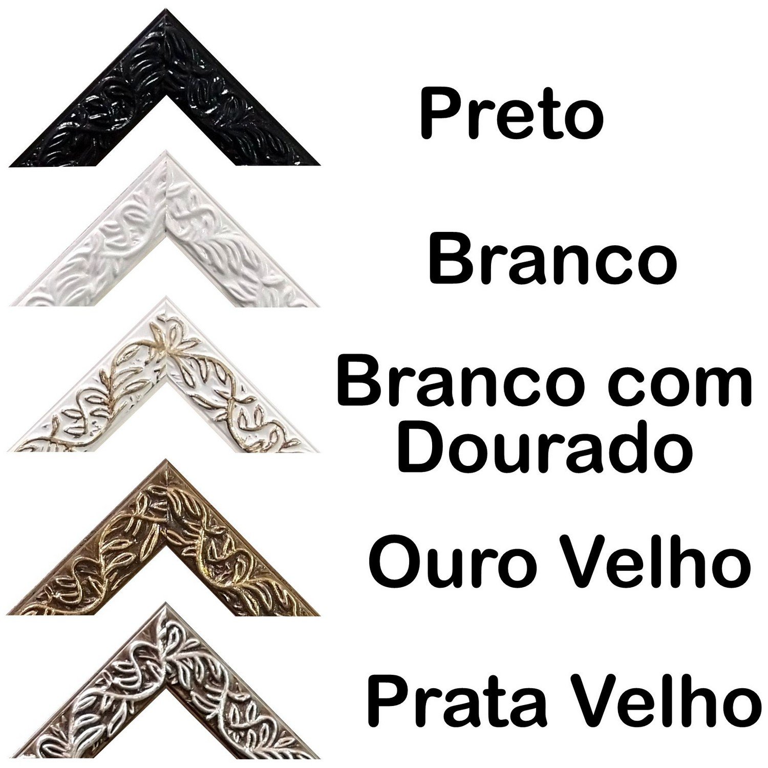 Selecione a cor da moldura que você deseja, após isso informe as medidas com exatidão nos campos de Comprimento e Largura.