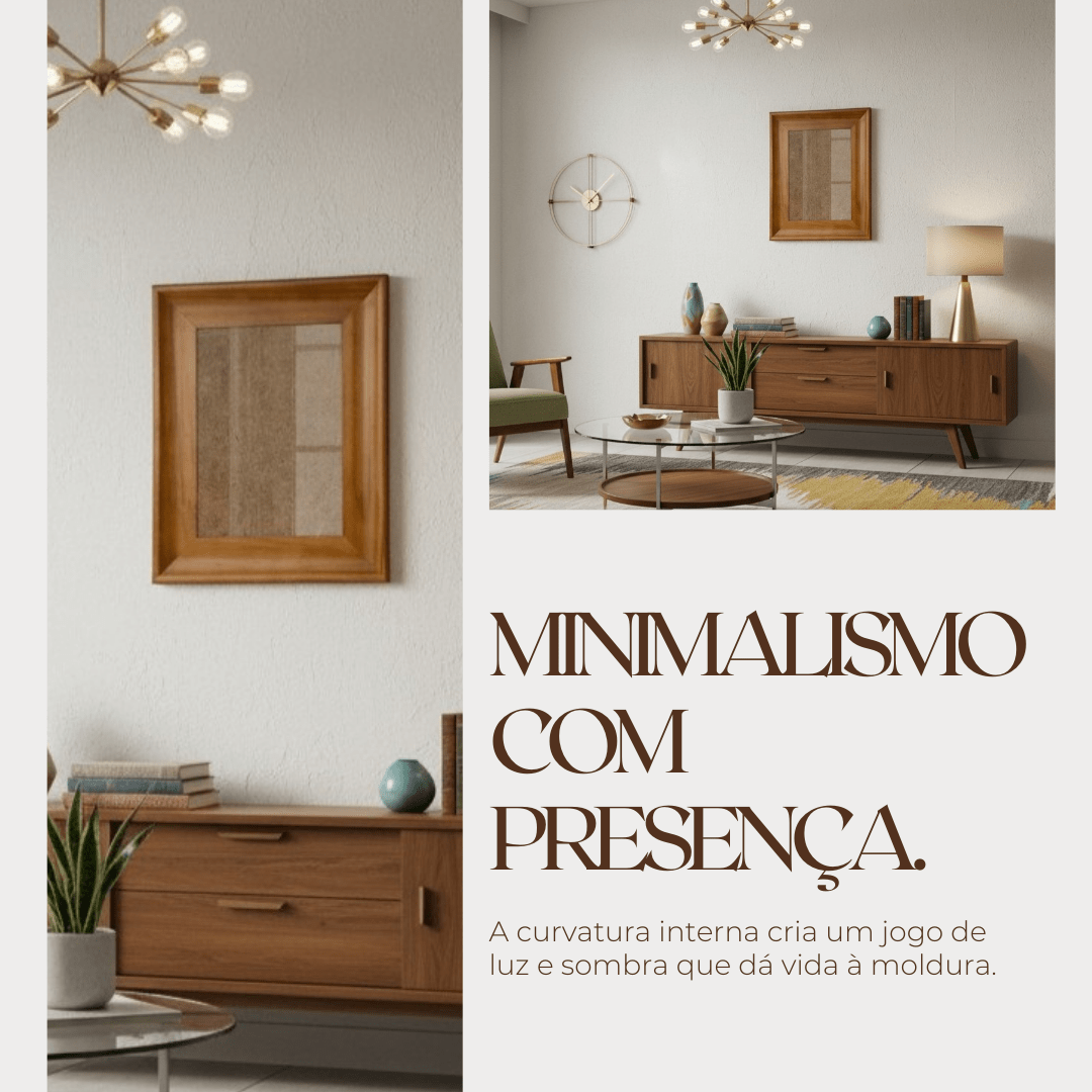 Seu design côncavo e delicadamente esculpido valoriza quadros, fotos, pôsteres e porta maternidade, destacando a arte e proporcionando um efeito visual sofisticado. A Moldura Côncava Envernizada não é apenas um item decorativo: é uma forma de transformar espaços, criar ambientes acolhedores e transmitir personalidade através da decoração. Ideal para salas de estar, quartos, escritórios, hall de entrada ou qualquer espaço que mereça um detalhe que una funcionalidade e estética. Escolha entre as cores Mel, Cacau e Pinus Natural, encontre o tamanho ideal para sua parede e permita que cada detalhe do seu ambiente conte uma história. Com a Moldura Côncava Envernizada, cada quadro ou foto ganha vida, cada parede se transforma em um espaço inspirador e cada escolha reflete cuidado, estilo e bom gosto.