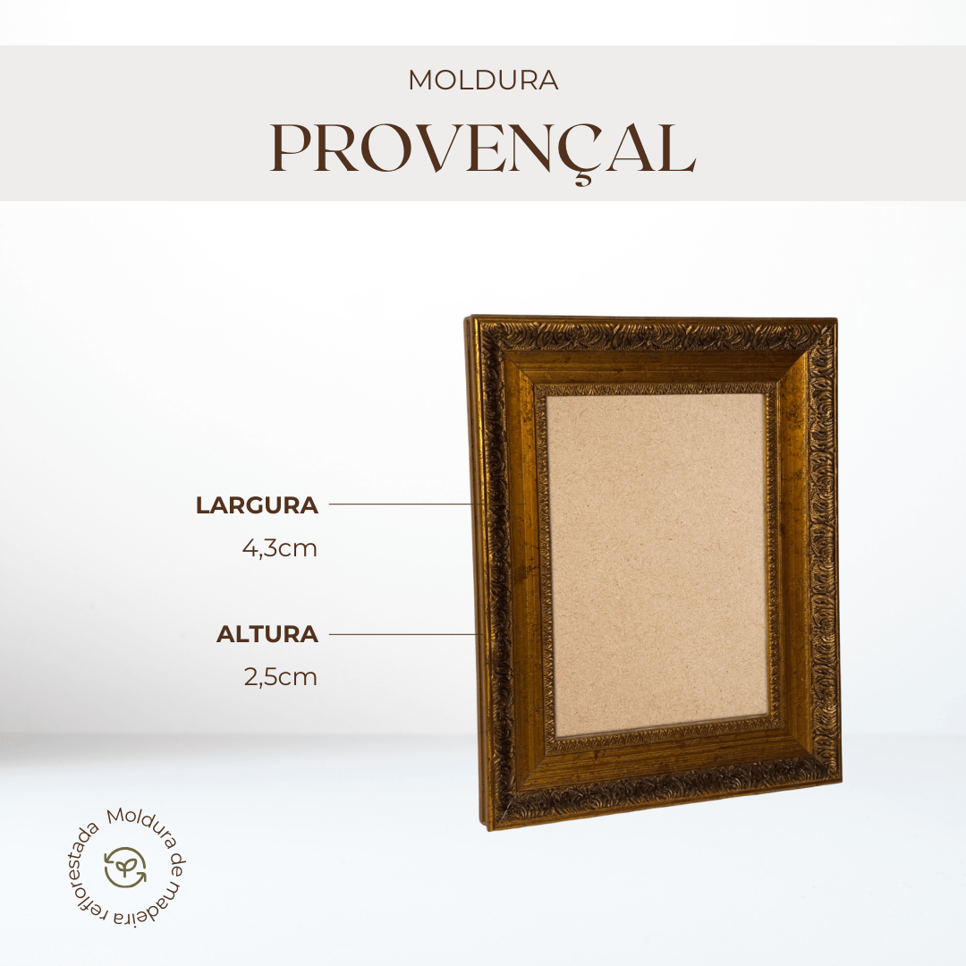 Se você busca uma moldura que valorize suas fotos, quadros ou artes decorativas, a moldura provençal com gravação ornamental é a escolha perfeita. Com um design inspirado no clássico estilo provençal, essa moldura possui detalhes gravados e acabamento decorativo que trazem charme, sofisticação e um toque vintage para qualquer ambiente. Seu relevo trabalhado cria profundidade e elegância, transformando uma simples foto ou arte em um verdadeiro destaque na decoração. O estilo provençal é conhecido por sua estética elegante, delicada e atemporal.