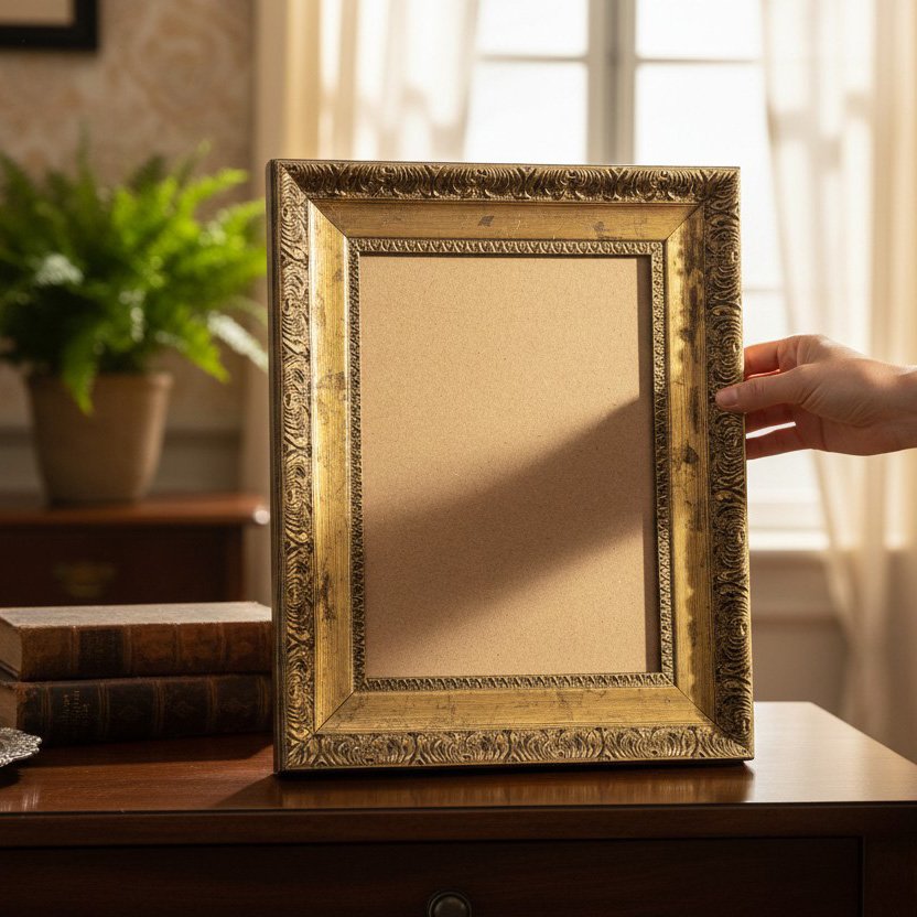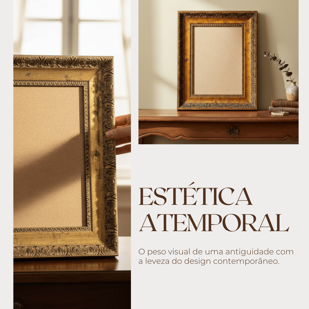 Ela cria um efeito visual que valoriza ainda mais a imagem ou obra exibida. O grande diferencial dessa moldura está em seus detalhes gravados e ornamentais, que remetem ao trabalho artesanal das molduras clássicas.