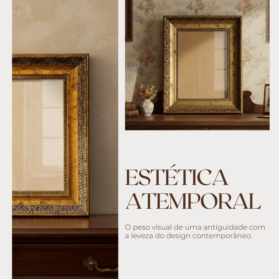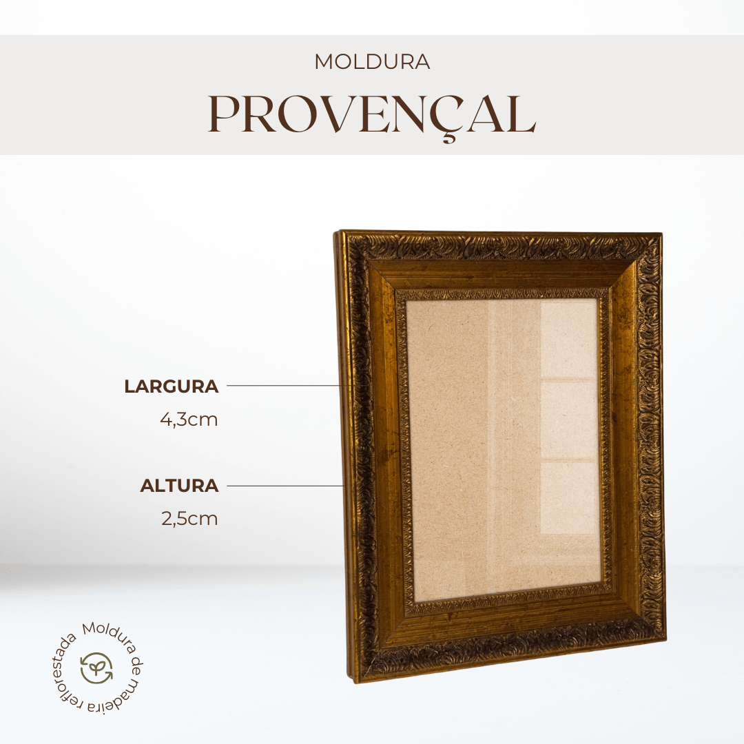 Ela cria um efeito visual que valoriza ainda mais a imagem ou obra exibida. O grande diferencial dessa moldura está em seus detalhes gravados e ornamentais, que remetem ao trabalho artesanal das molduras clássicas.