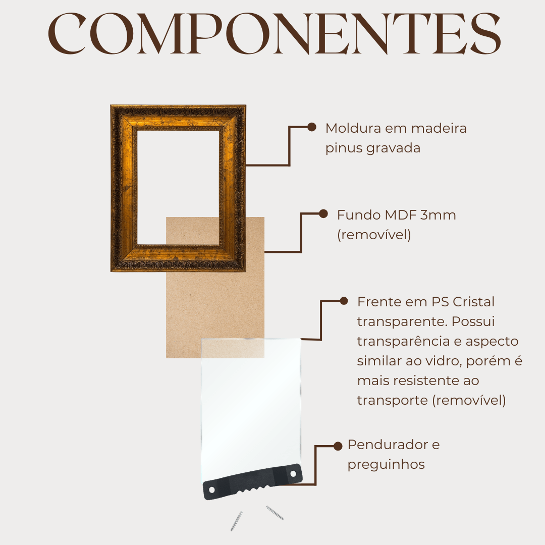 Graças ao seu acabamento rico em detalhes, essa moldura é perfeita para: