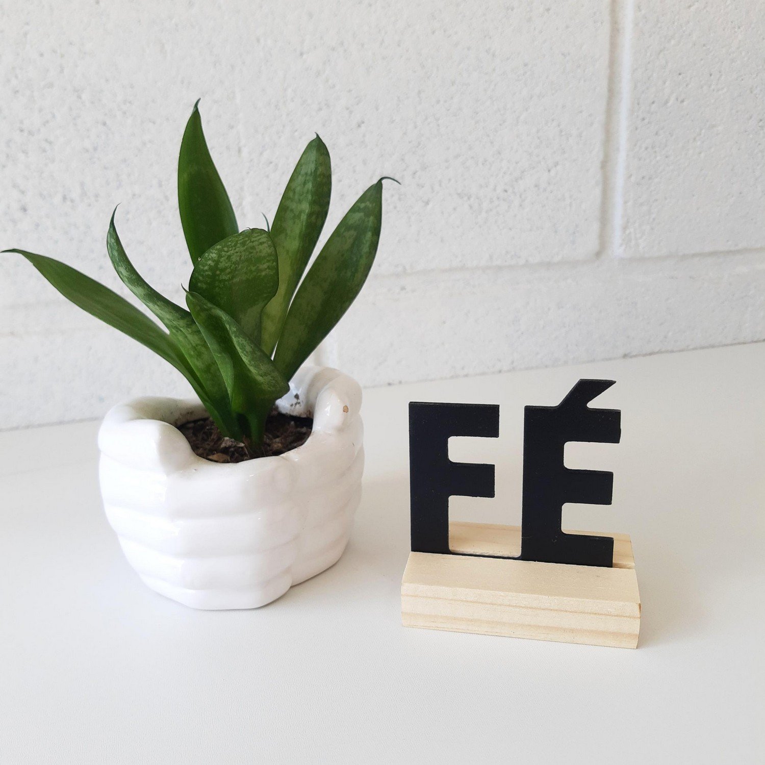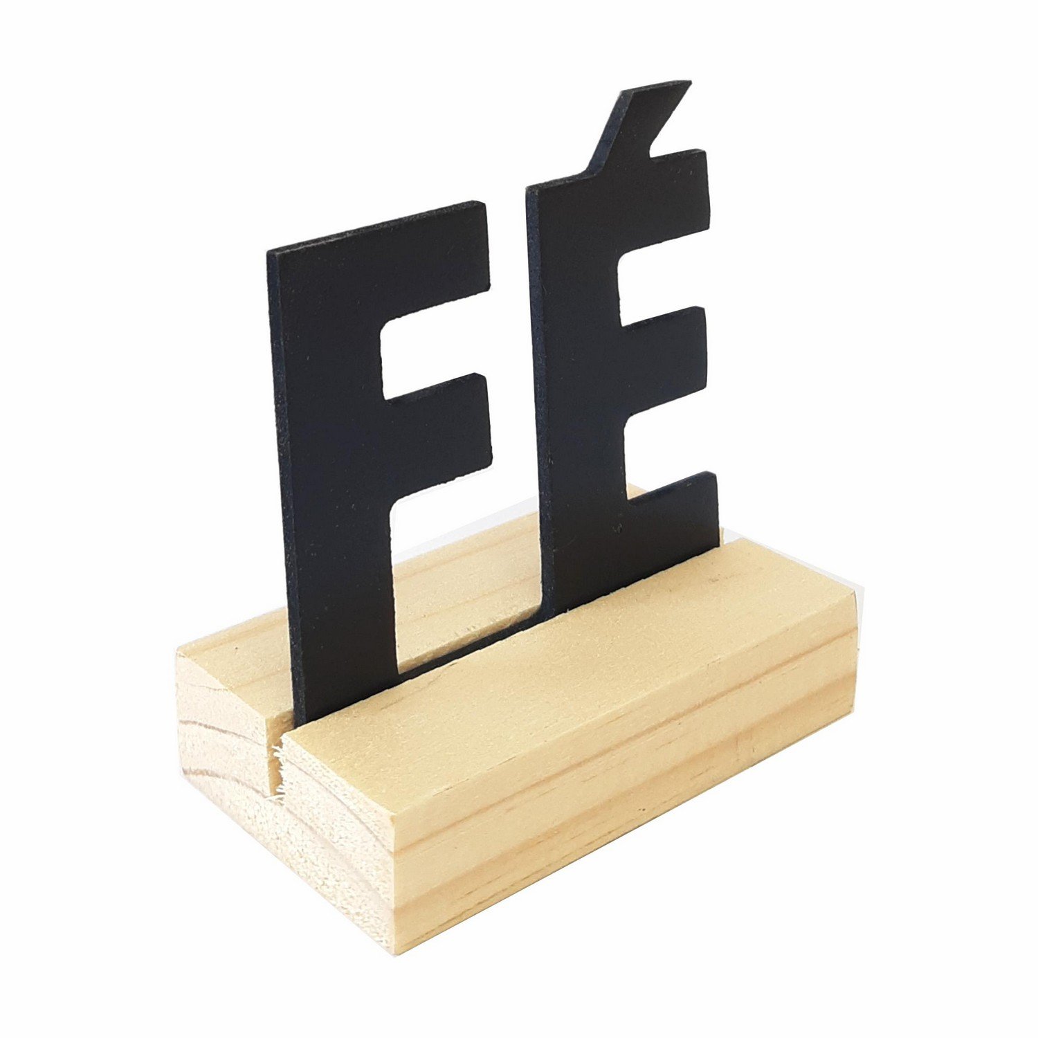 Palavra Decorativa Fé com Suporte, ideal para compor a decoração com outras palavras, quadros e/ou placas decorativas. Utilize sobre móveis, estantes e bancadas, pode ser usado na sala, quarto, cozinha, hall de entrada ou em qualquer ambiente que desejar. Decore com estilo e personalidade!