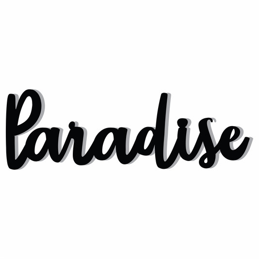 Palavra Decorativa Paradise estilo Lettering laqueado 6mm, ideal para aplicar em paredes e compor a decoração, seja com outras palavras, quadros e/ou placas. Pode ser aplicado na sala, quarto, cozinha, hall de entrada ou em qualquer ambiente que desejar.