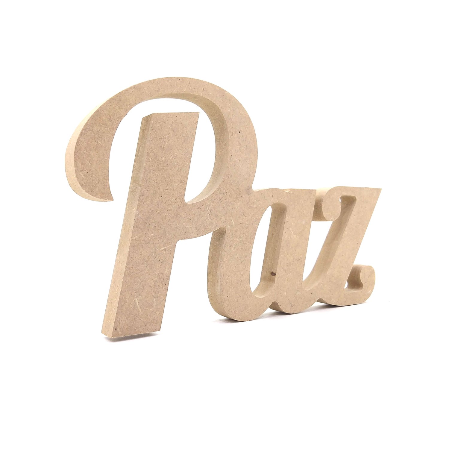 Palavra Paz em mdf cru de 15mm, pode ser usado em pé sobre móveis e estantes ou pendurado na parede. Palavra fabricada sem emendas em equipamento de alta precisão, Ideal para cortes em madeira e mdf.