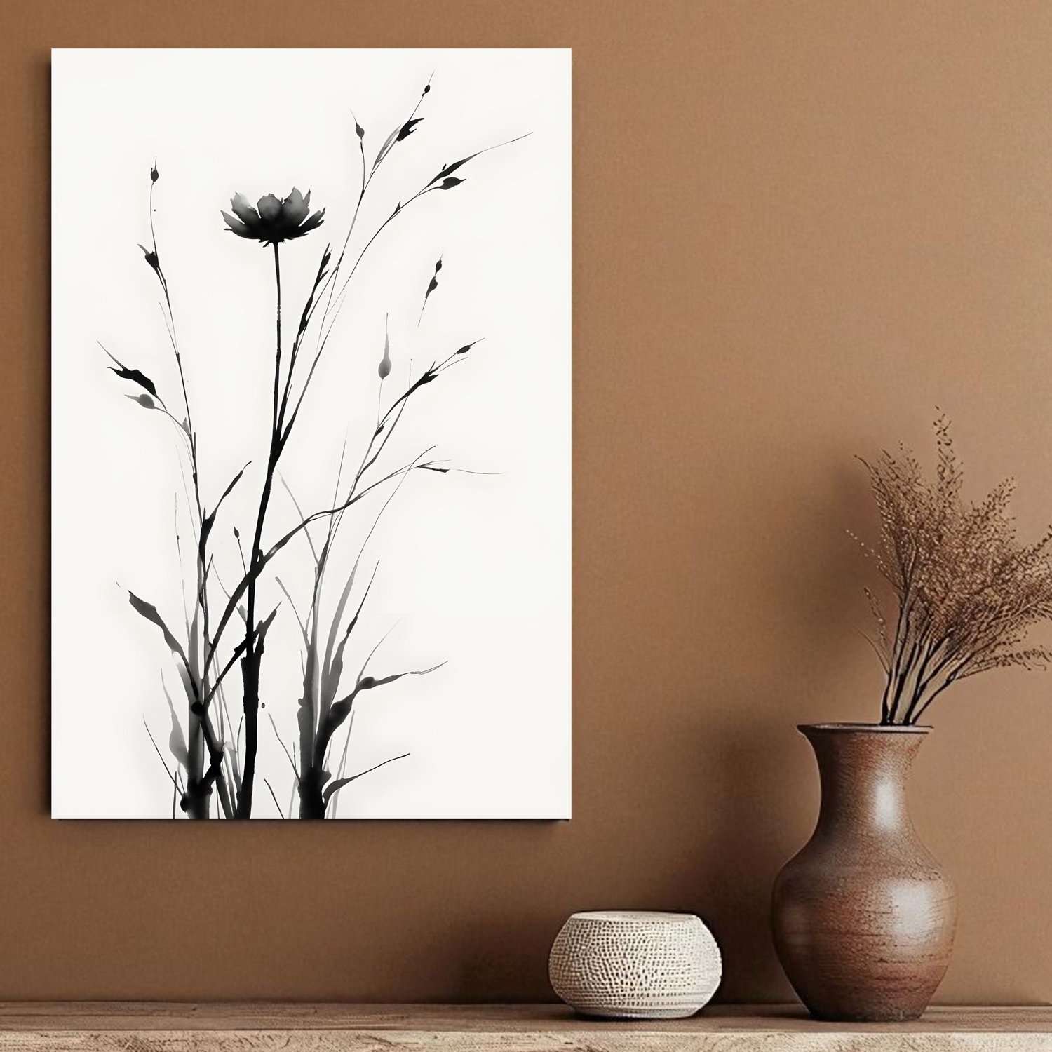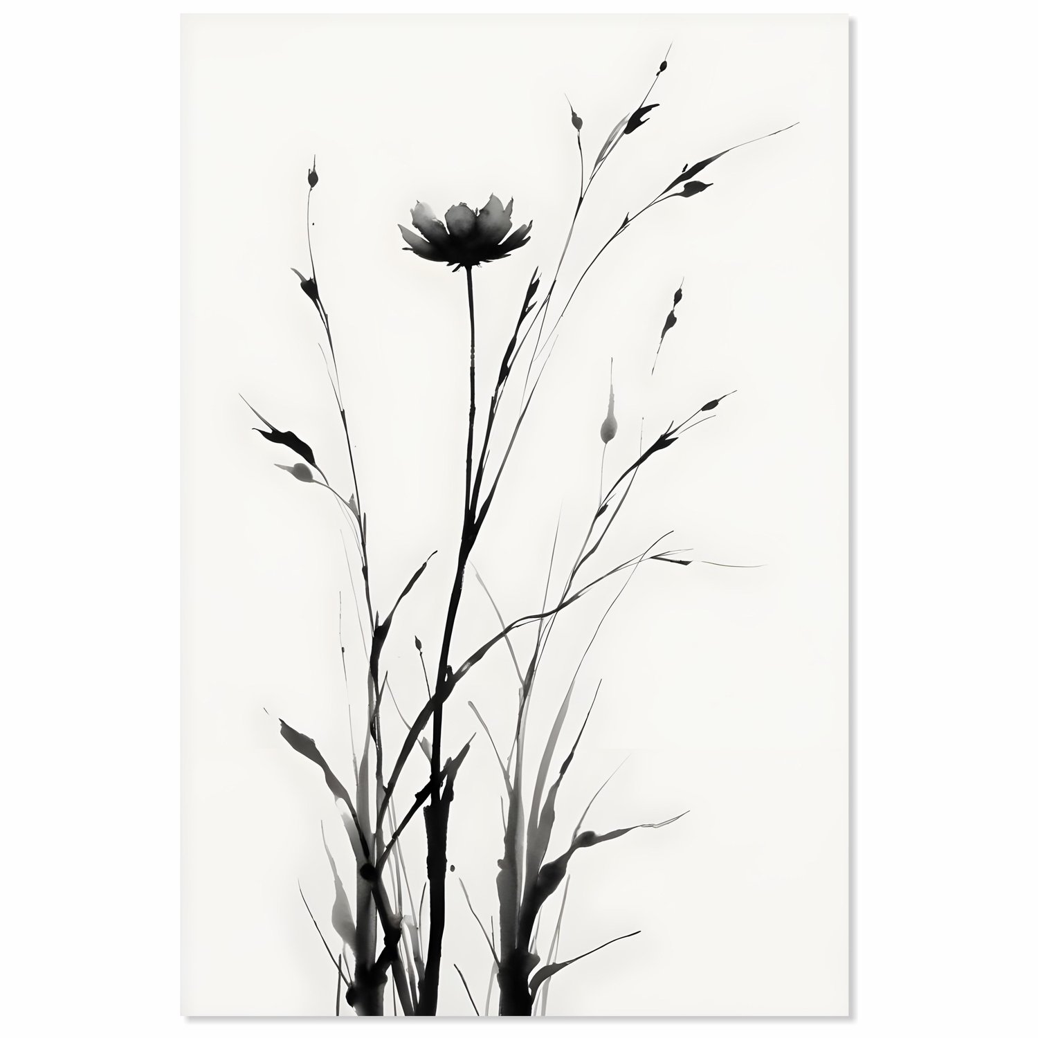 Placa decorativa Hana Pintura de Flor em Meio à Vegetação no Estilo Sumiê