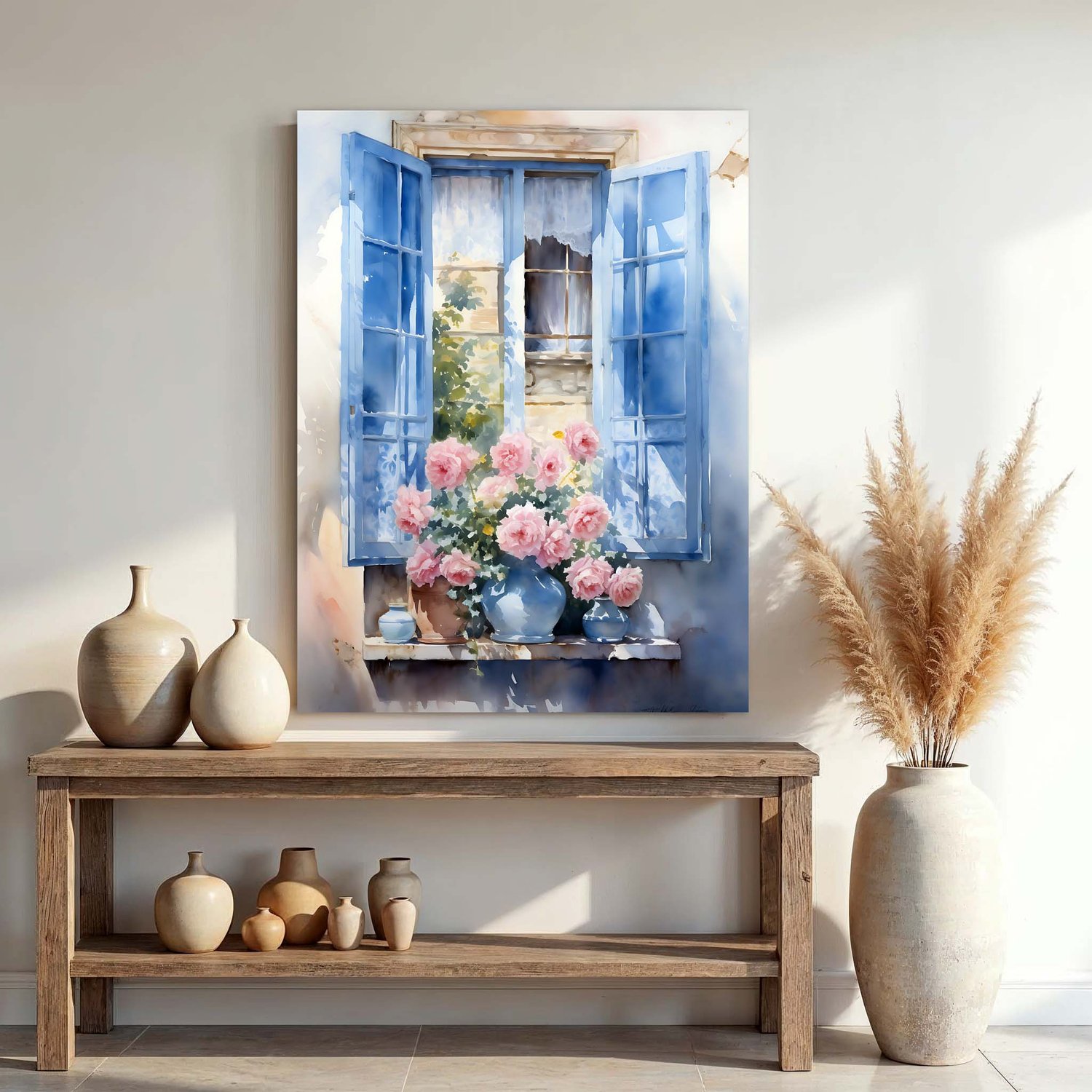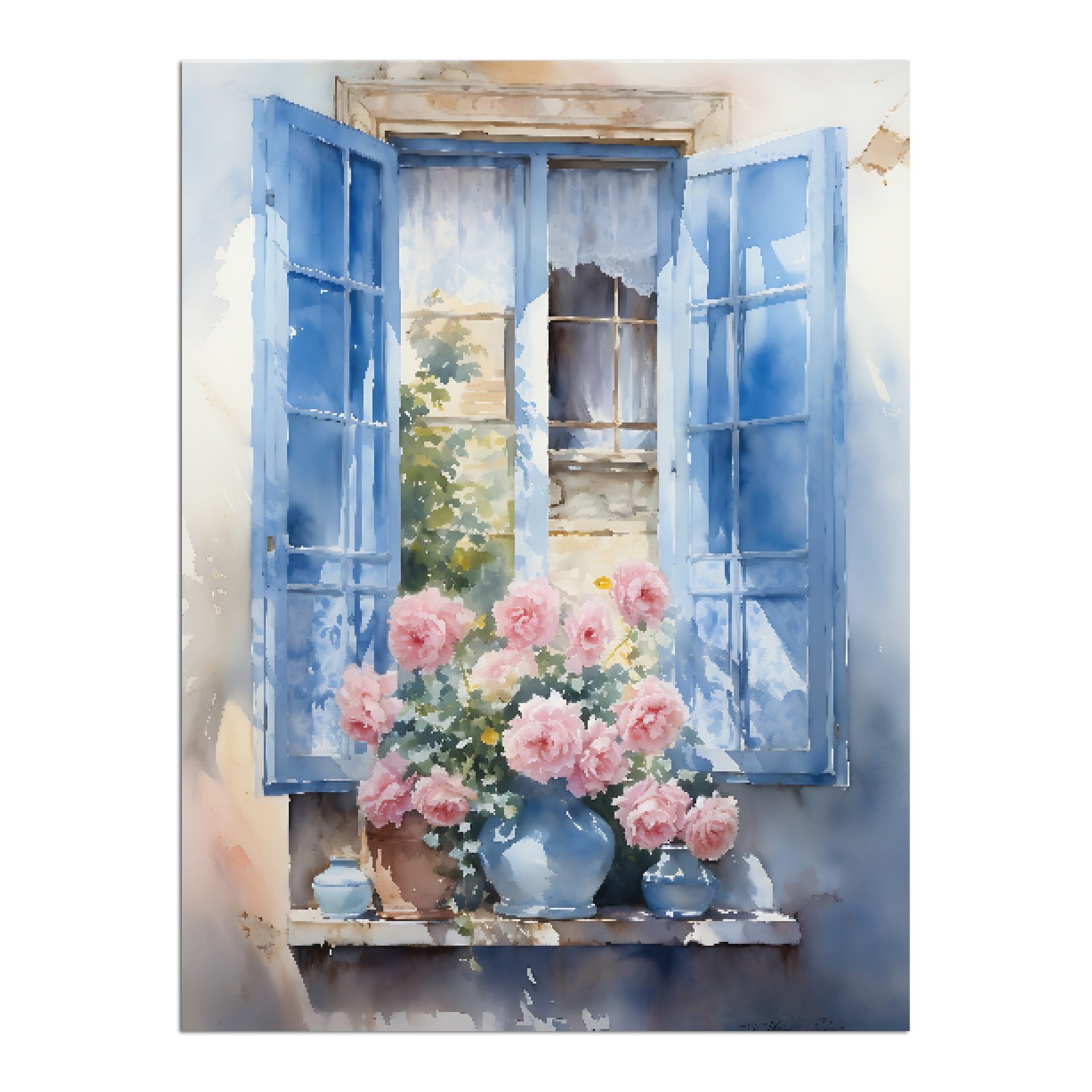 Placa Decorativa Janela Florida Aquarela