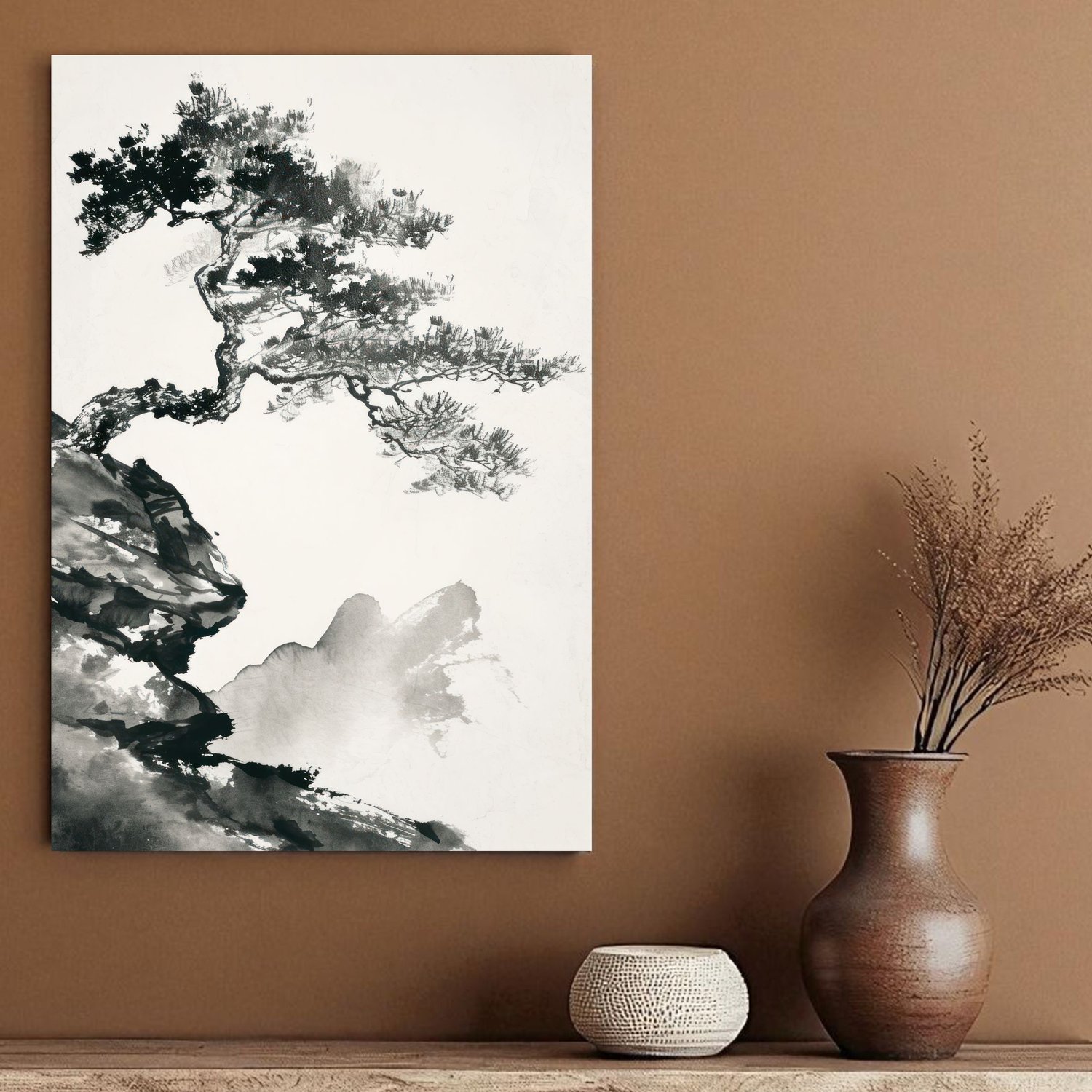 Placa Decorativa Ki Pintura de Árvore no Estilo Sumiê