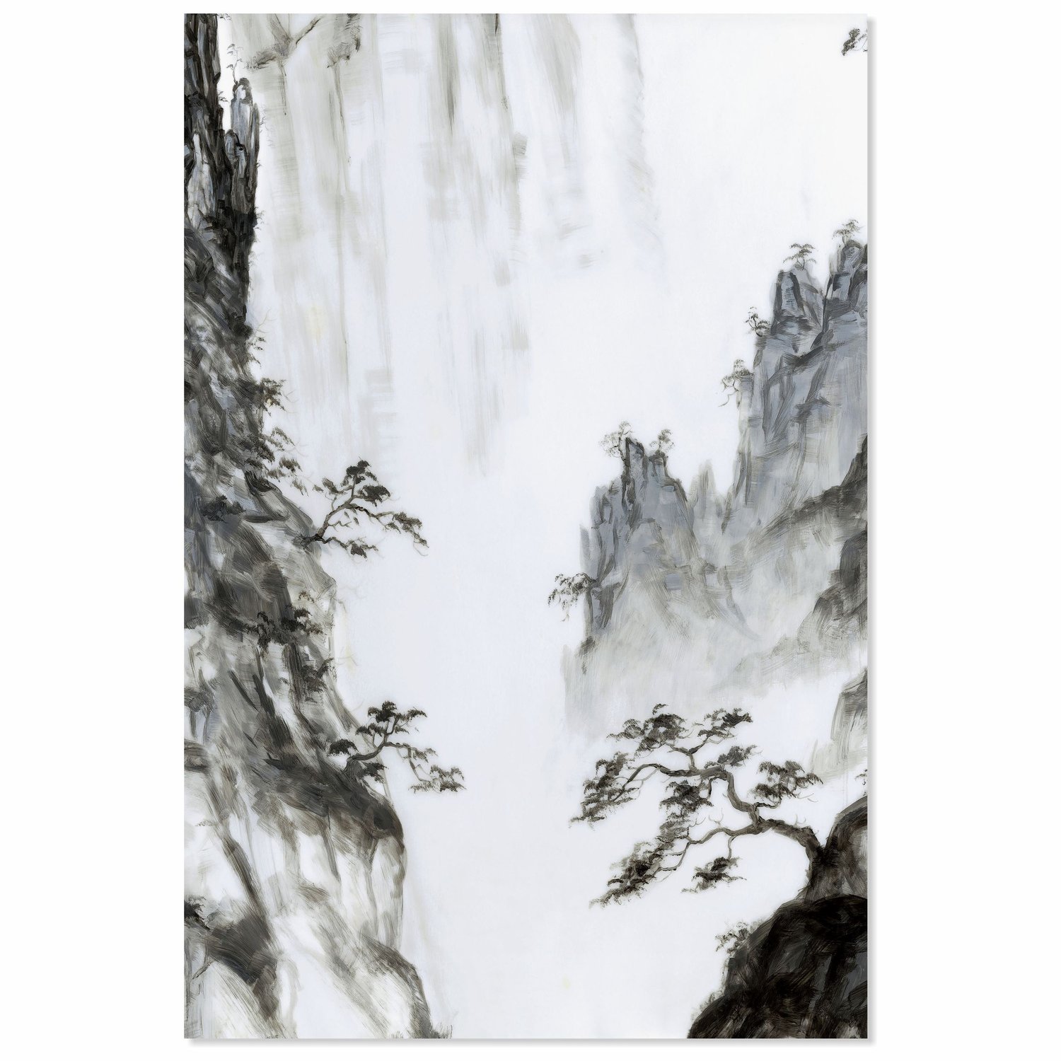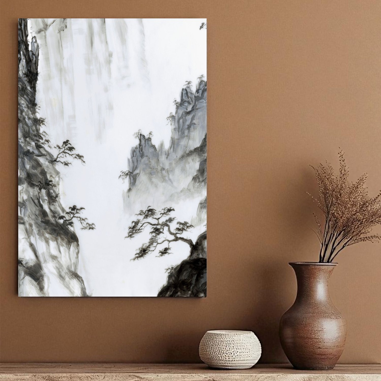 Placa Decorativa Ki Yama Pintura de Árvore na Montanha no Estilo Sumiê