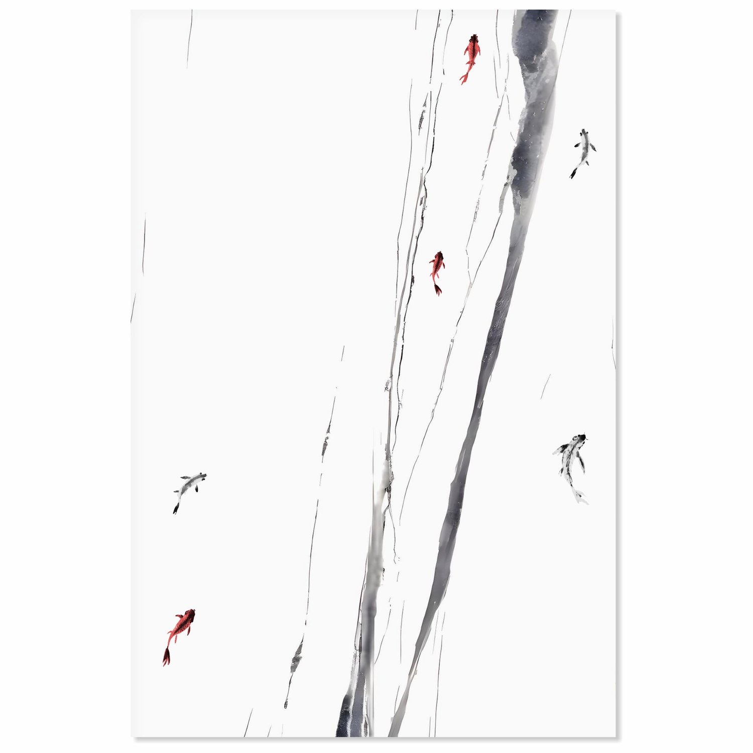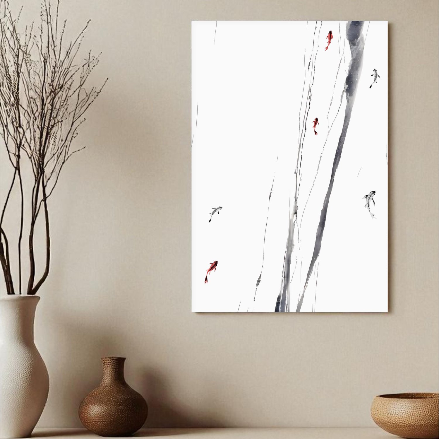 Placa Decorativa Koi Pintura de Carpas Nishikigoi Nadando no Estilo Sumiê