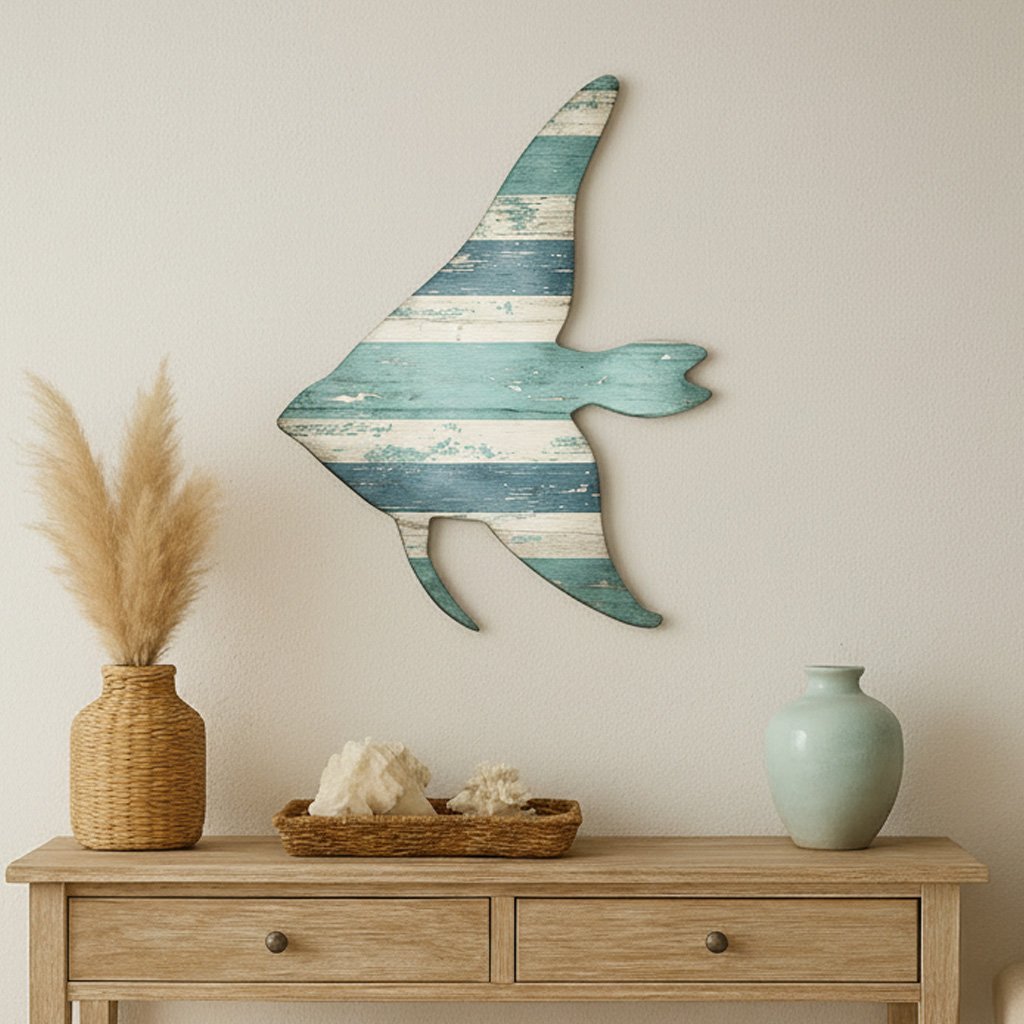 Traga a leveza e a alegria do oceano para dentro da sua casa com a Plaquinha Decorativa Peixe em MDF 3mm, uma peça encantadora que une arte, estilo náutico e acabamento de qualidade. Produzida em MDF de 3mm cortado a laser, apresenta traços delicados e um design fluido que transmite movimento, vida e conexão com o mar.