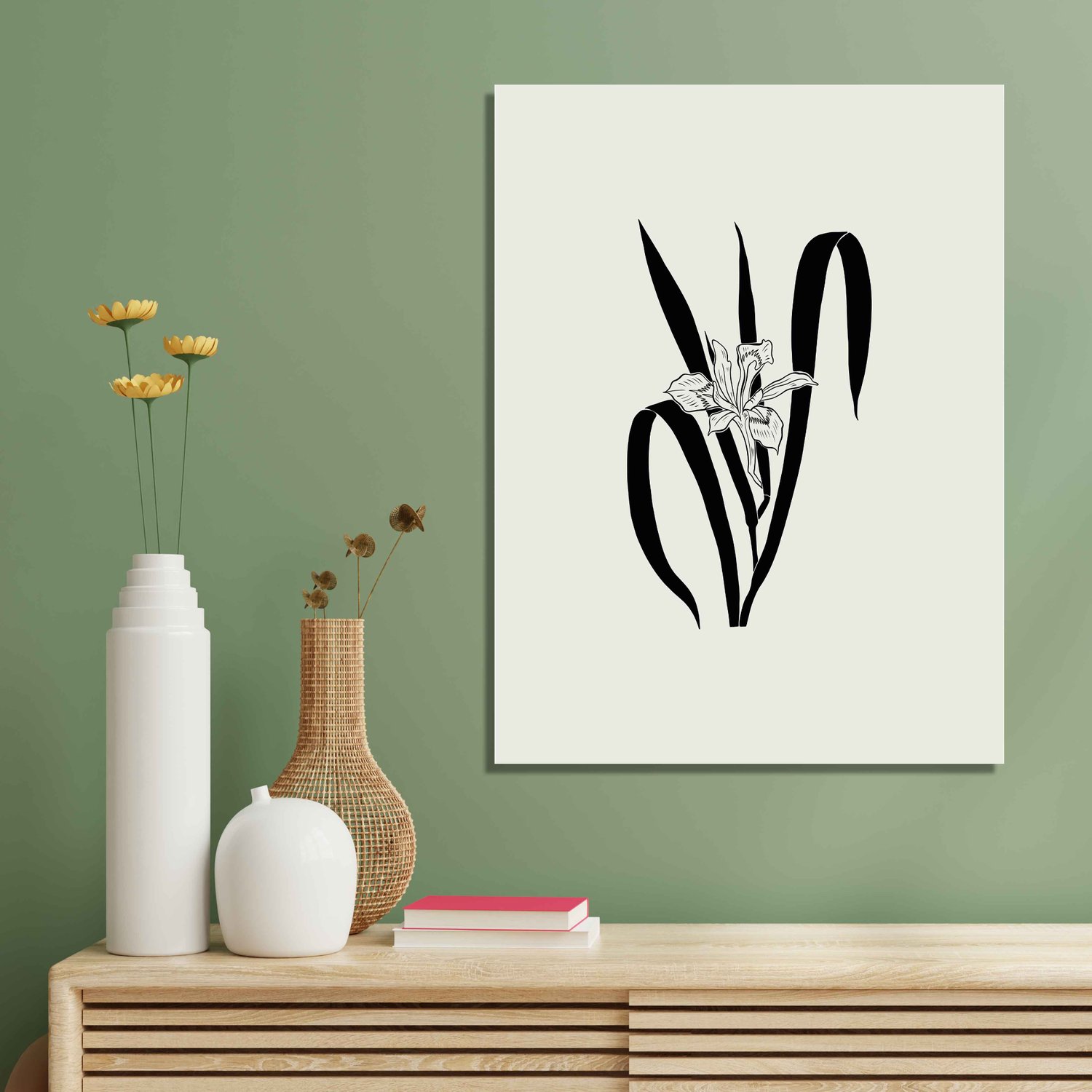 Placa Decorativa Ramo Com Flor Orquídea Estilo Japandi