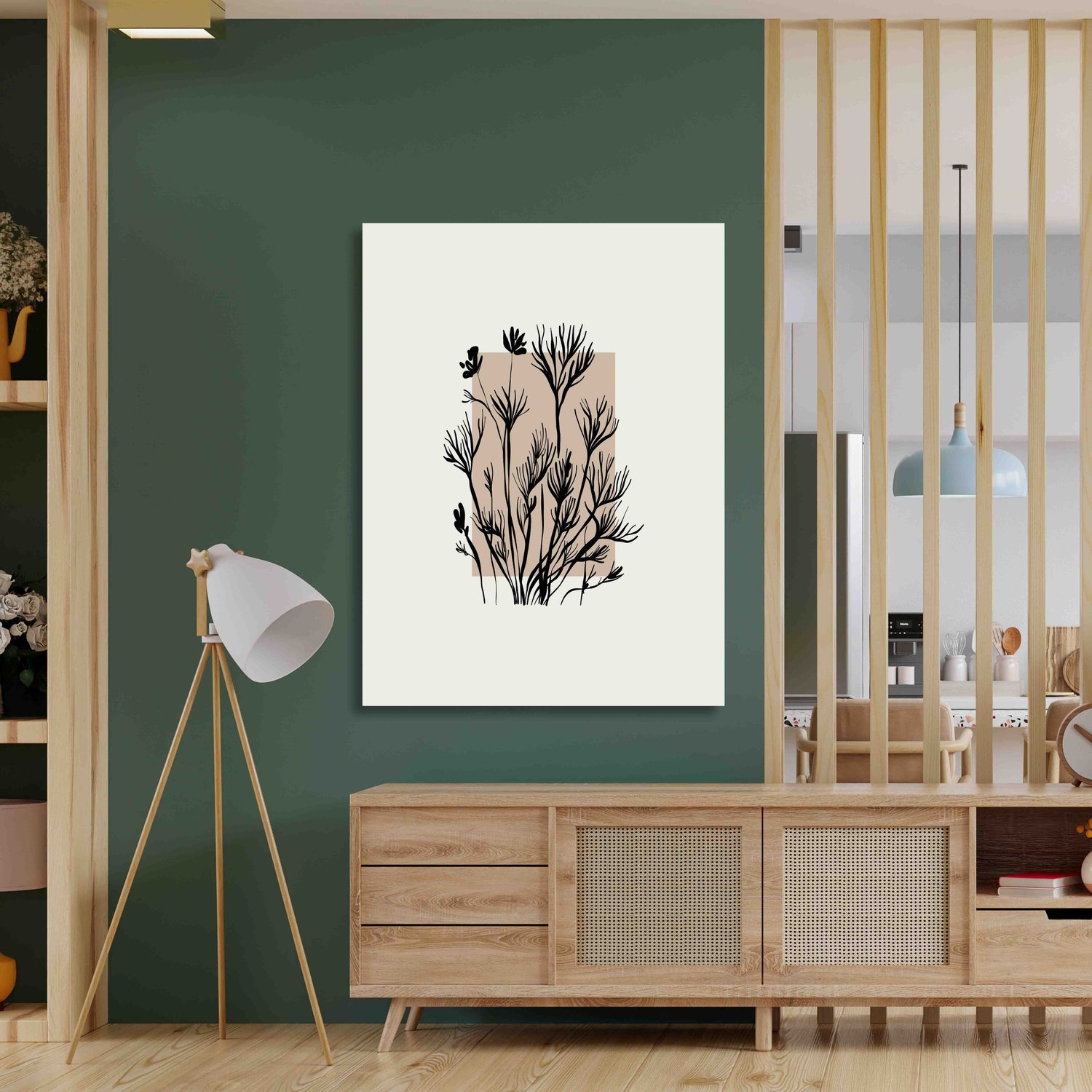 Placa Decorativa Ramo De Flores Botânica Estilo Japandi