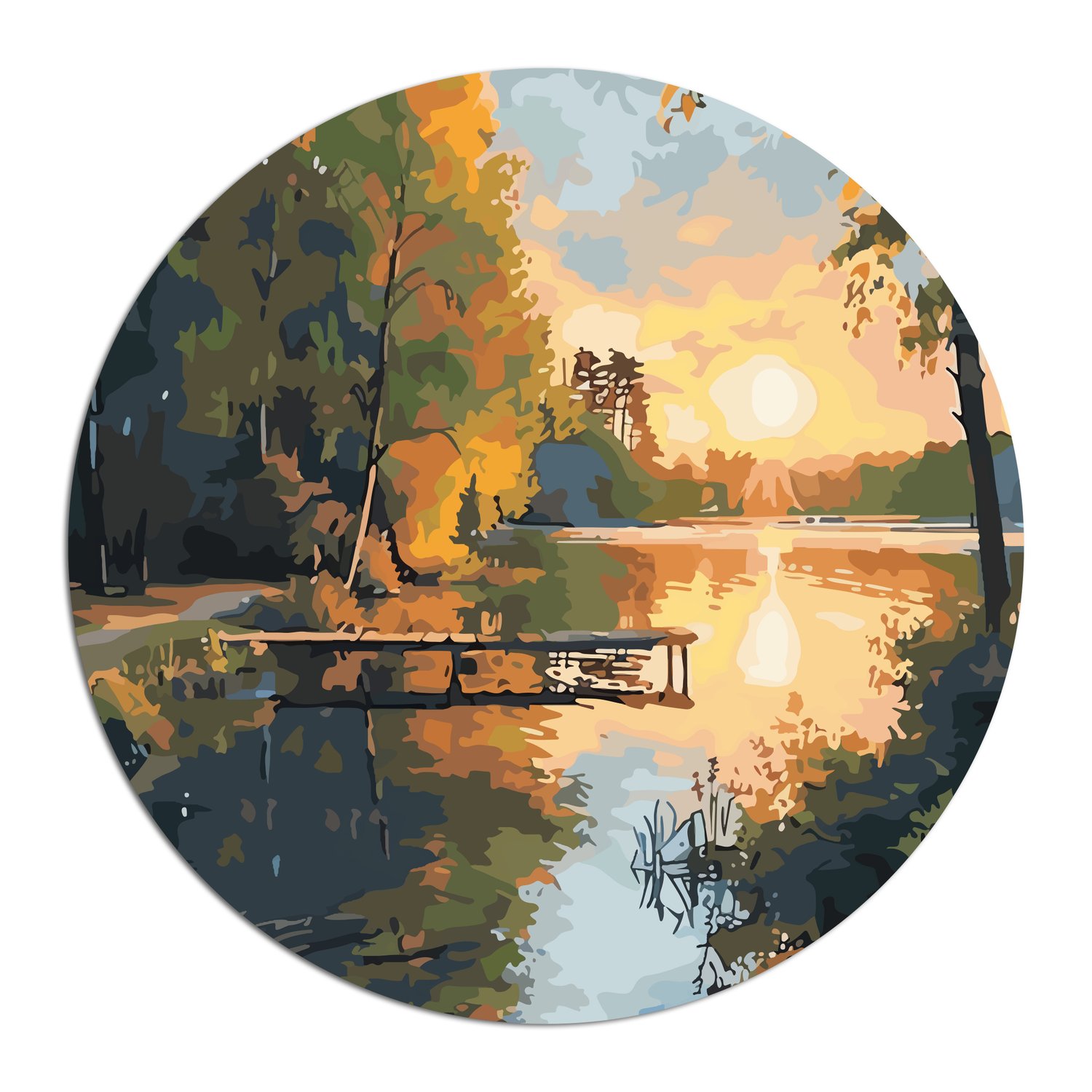 Placa Decorativa Redonda Píer ao Entardecer de Outono