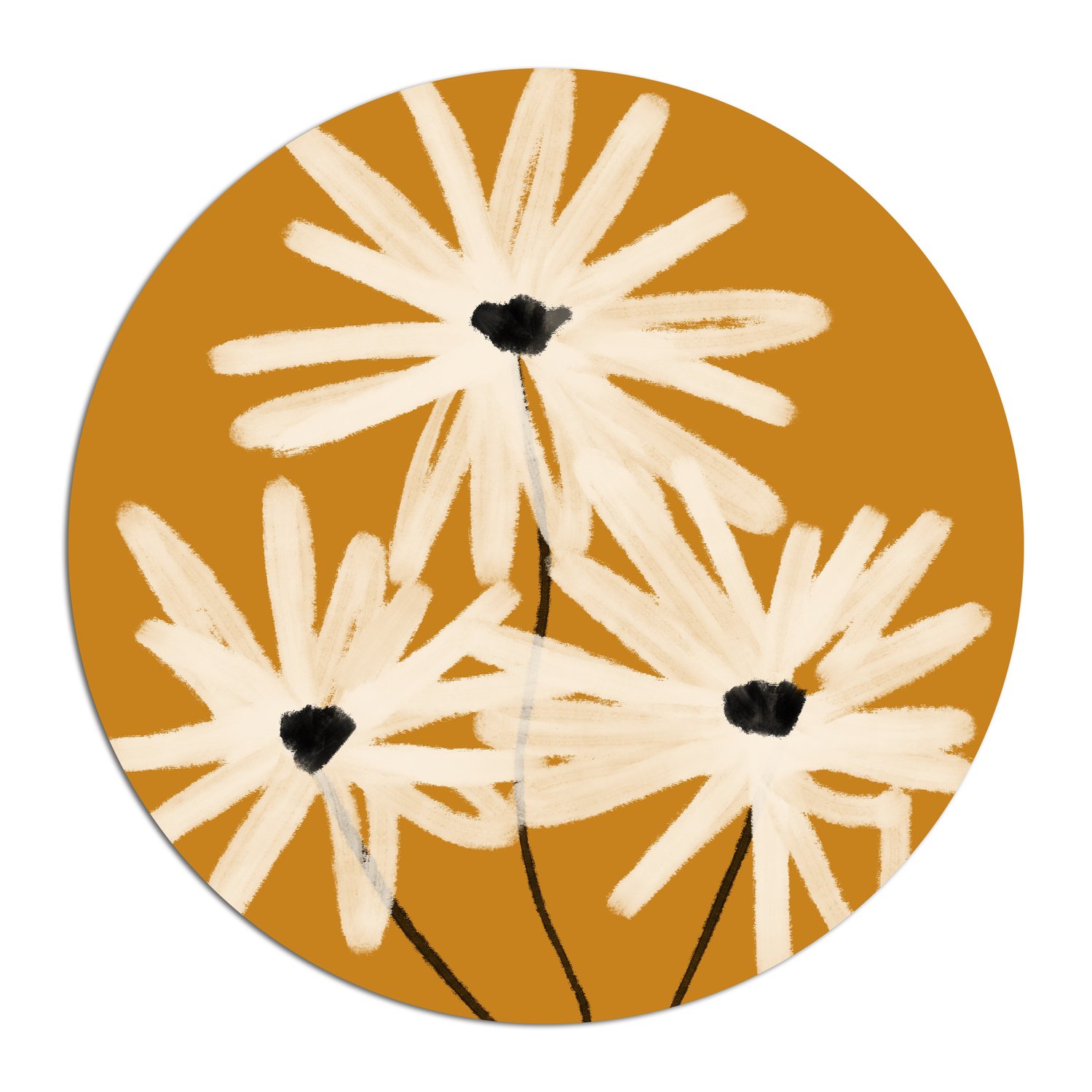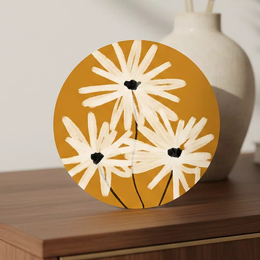 Placa Decorativa Redonda Trio de Flores em Fundo Ocre