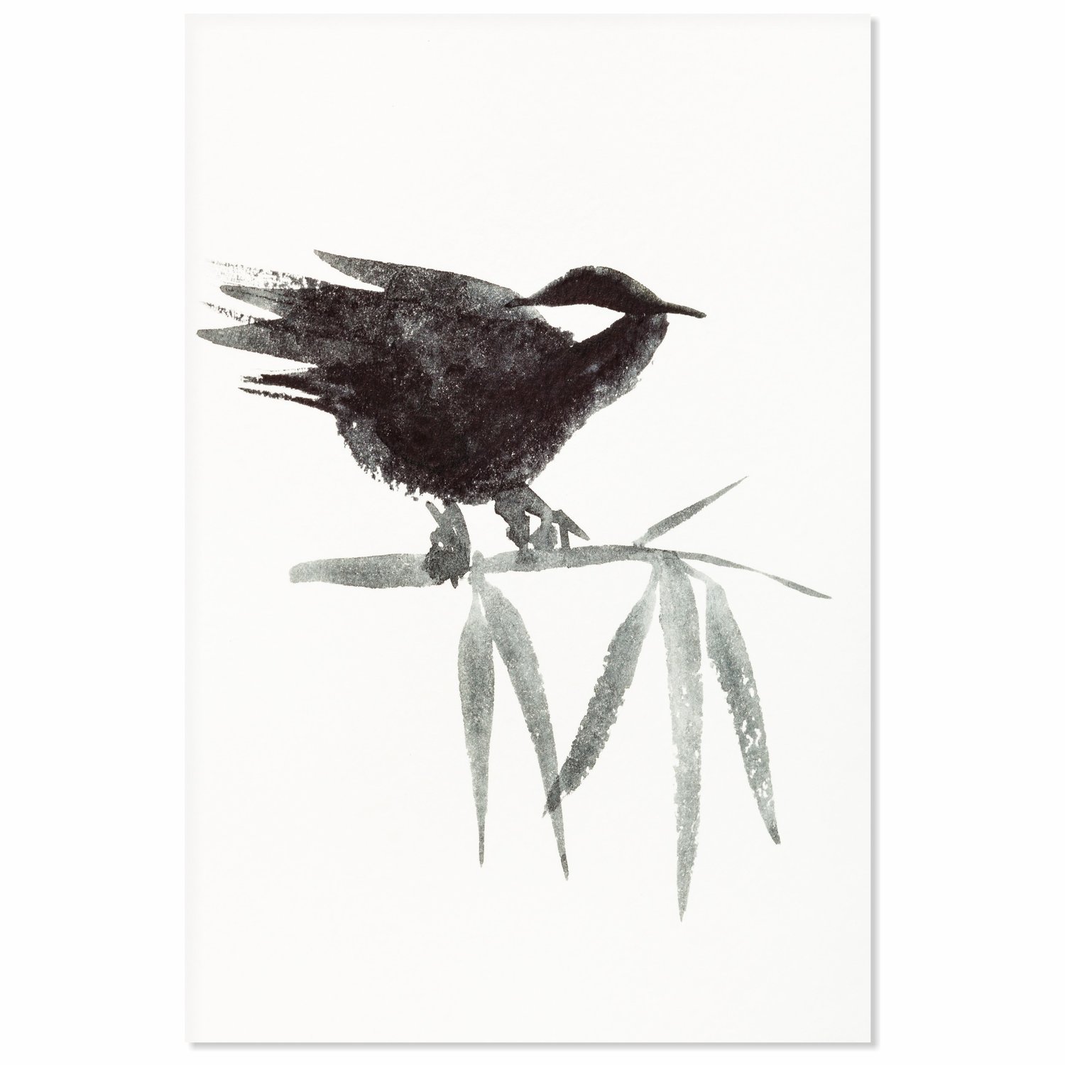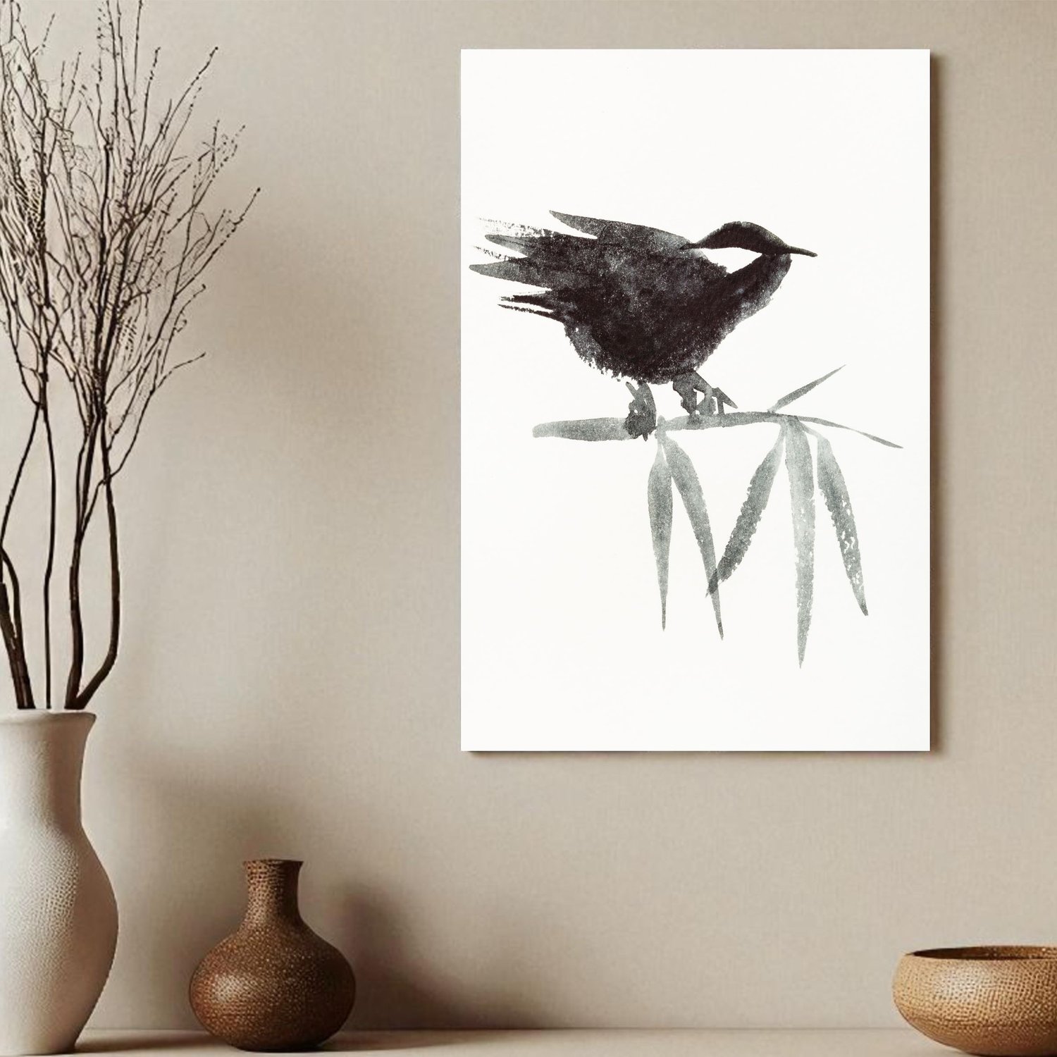 Placa Decorativa Suzume Arte de Pardal Pousado em galho no Estilo Sumiê