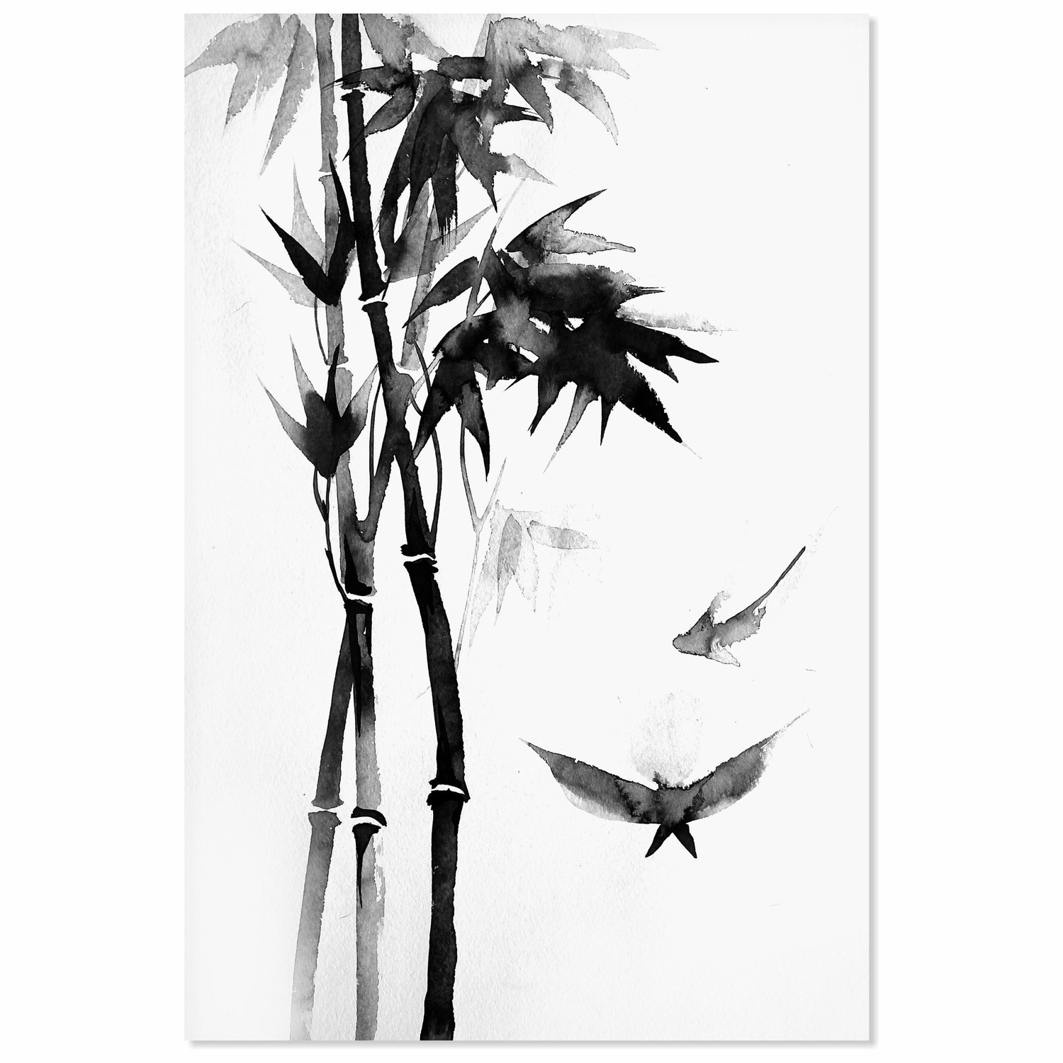 Placa Decorativa Take Pintura de Bambu e Pássaros no Estilo Sumiê
