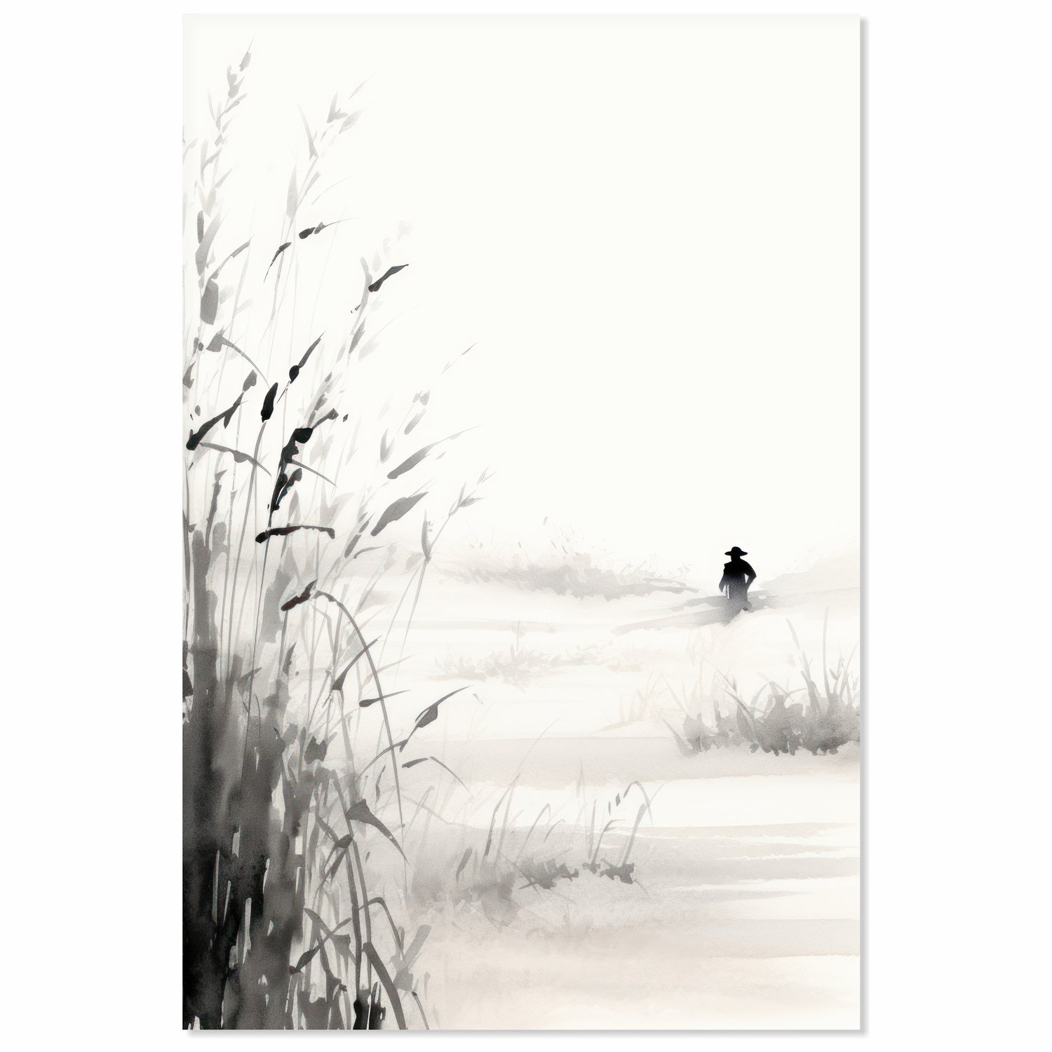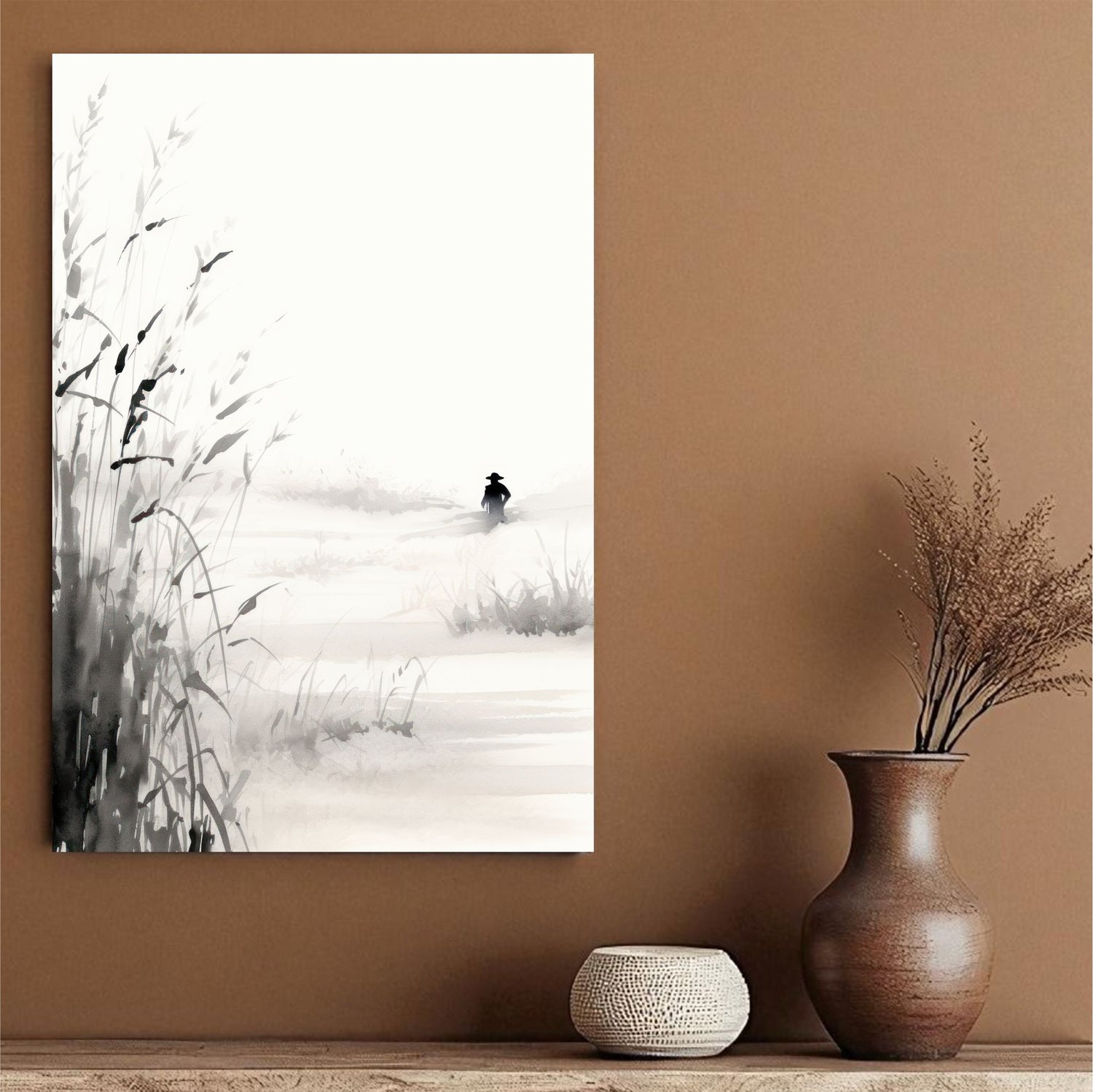 Placa Decorativa Tanbo Otoko Pintura Homem em Meio aos Campos de Arroz no Estilo Sumiê