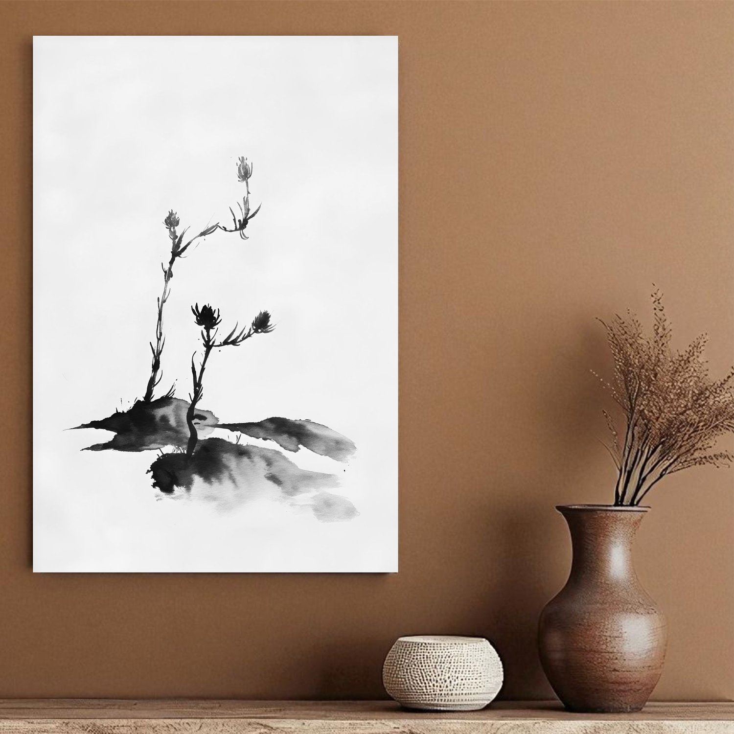Placa Decorativa Tsubomi Pintura de Botões de Flores no Estilo Sumiê