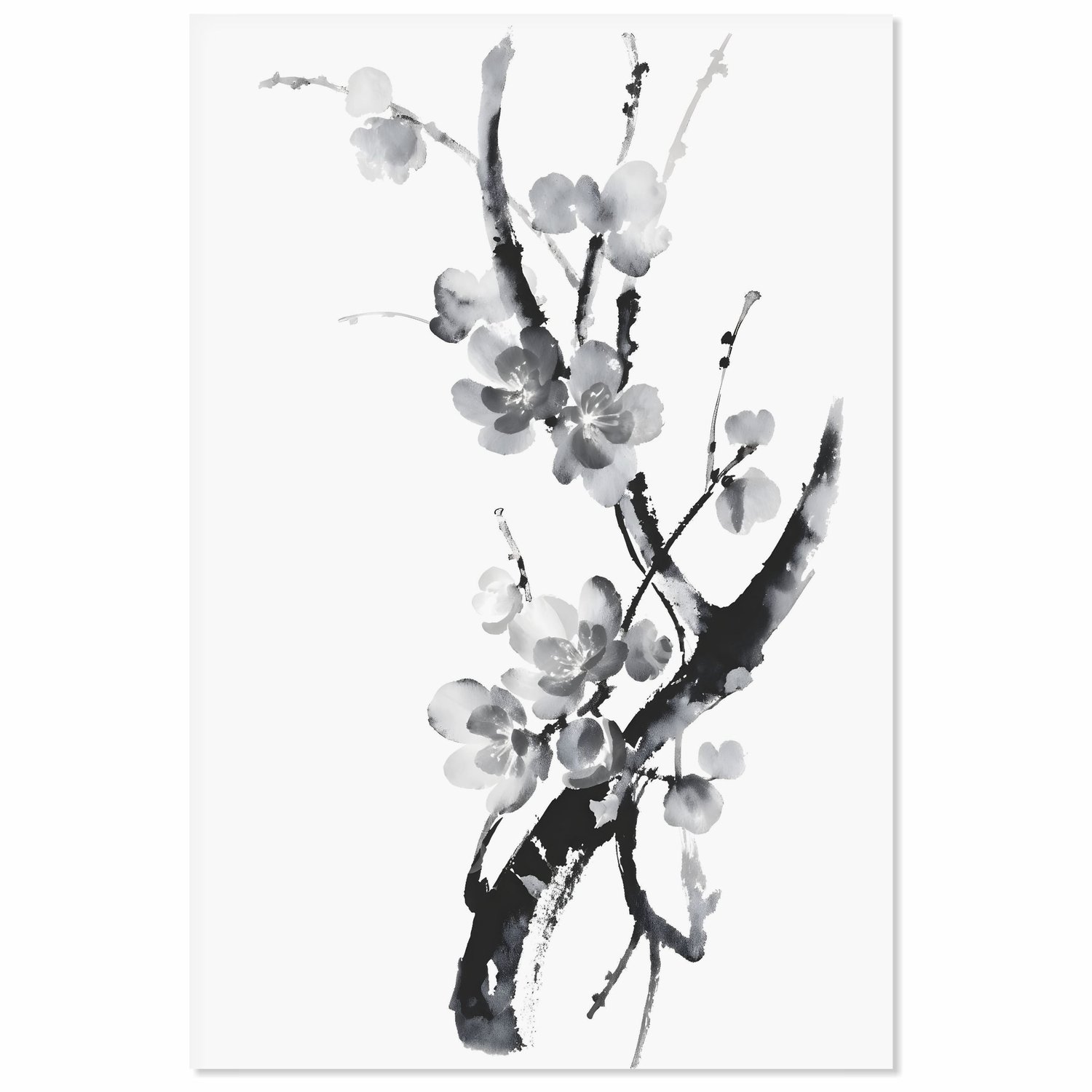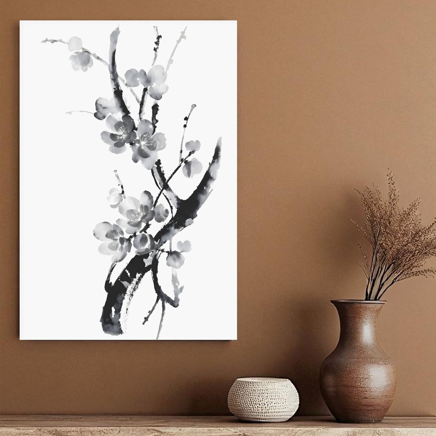 Placa Decorativa Ume Pintura de Amexeira no Estilo Sumiê