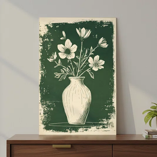 Placa Decorativa Vaso de Flores Estilo Modern Heritage