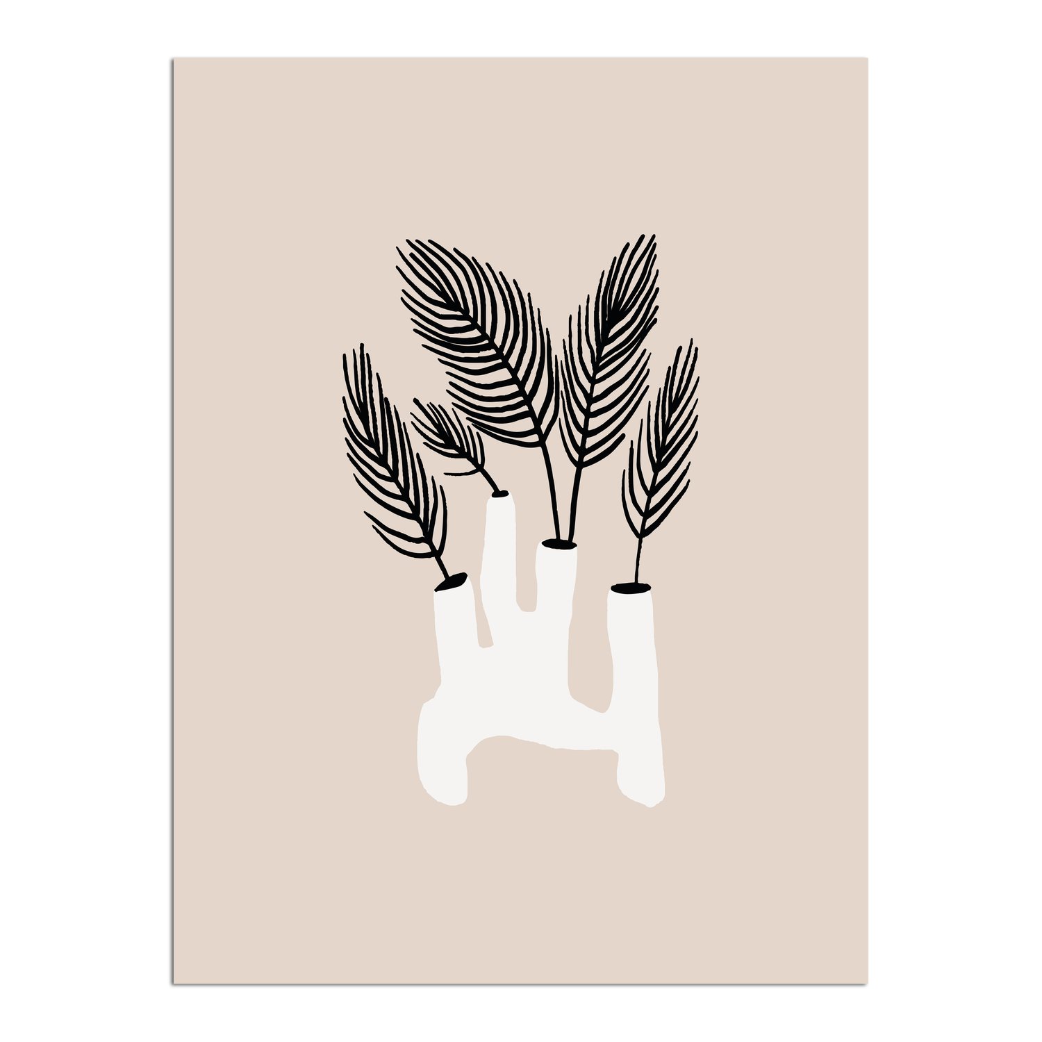 Placa Decorativa Vaso Moderno Com Folhas Estilo Japandi