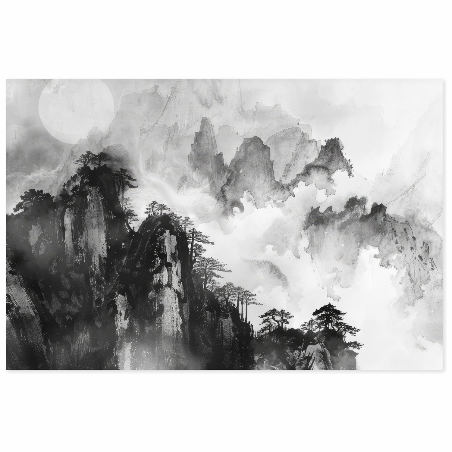 Placa Decorativa Yama Pintura de Montanha no Estilo Sumiê