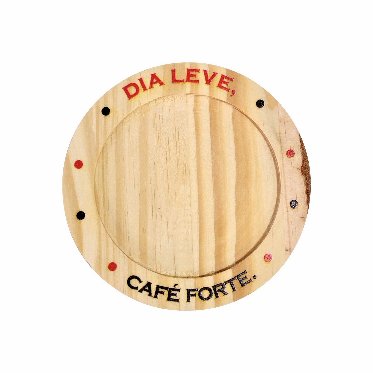 Porta Copos em Madeira de Pinus 12cm com Frase - Dia Leve, Café Forte