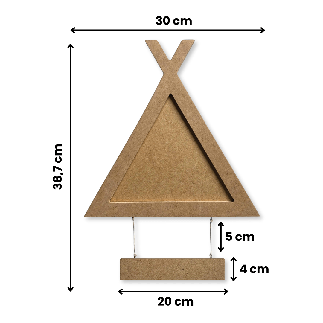 Material: Mdf cru 15mm, fundo em mdf 3mm, plaquinha de mdf, cordão de algodão e ganchinhos. (não acompanha proteção para a imagem);