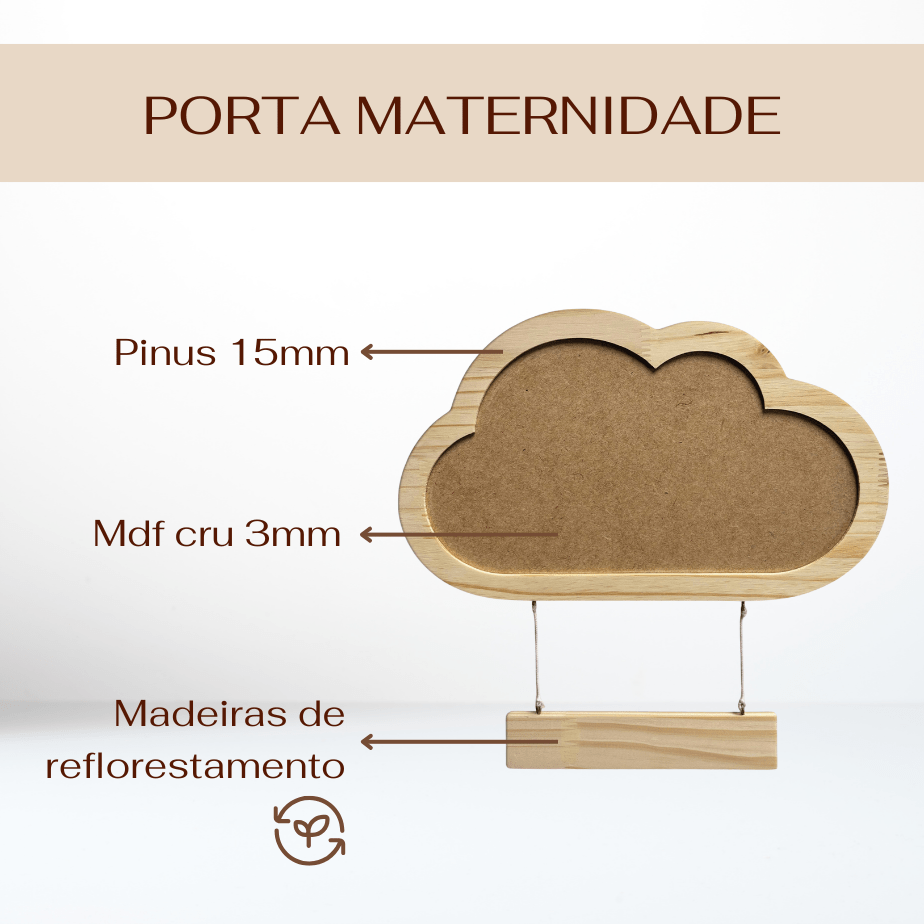 Porta Maternidade Para Amigurumi Em Pinus Moldura Nuvem Com Plaquinha