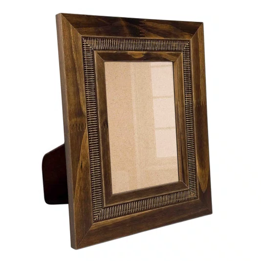 Feito em madeira de alta qualidade, com friso delicadamente gravado à mão, ele é uma peça que une tradição artesanal e design contemporâneo. O detalhe do friso não é apenas decorativo, ele emoldura a imagem com uma leveza visual que cria profundidade e destaca o que mais importa: a memória.