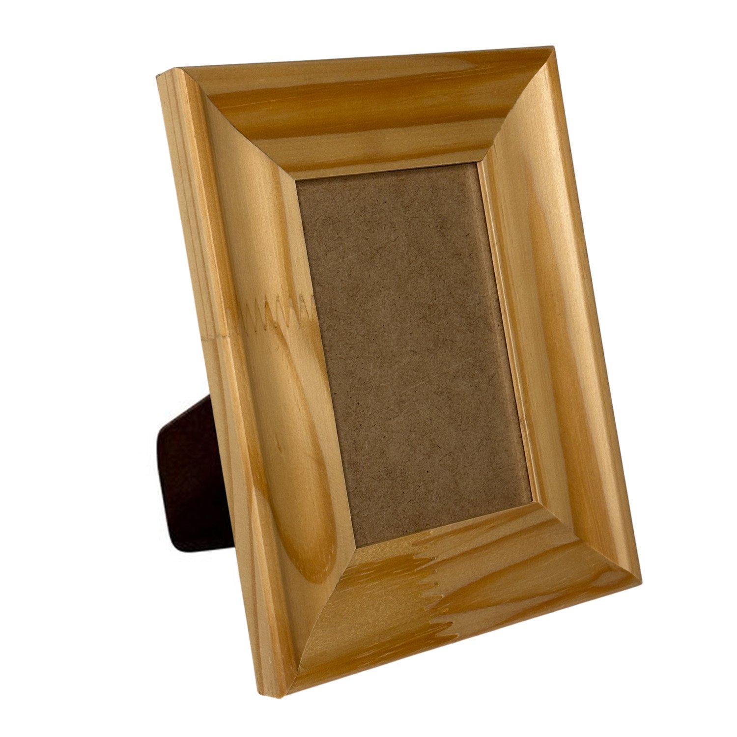 Porta Retrato Com Moldura Côncava Envernizada Com Suporte E Frente Em Vidro - 4,4x1,9