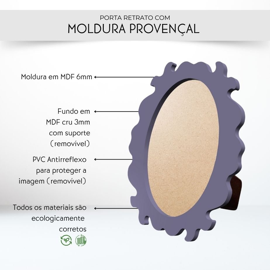 Porta Retrato com Moldura Provençal Colorida Oval Em MDF 6mm Com Suporte em MDF e PVC Antirreflexo