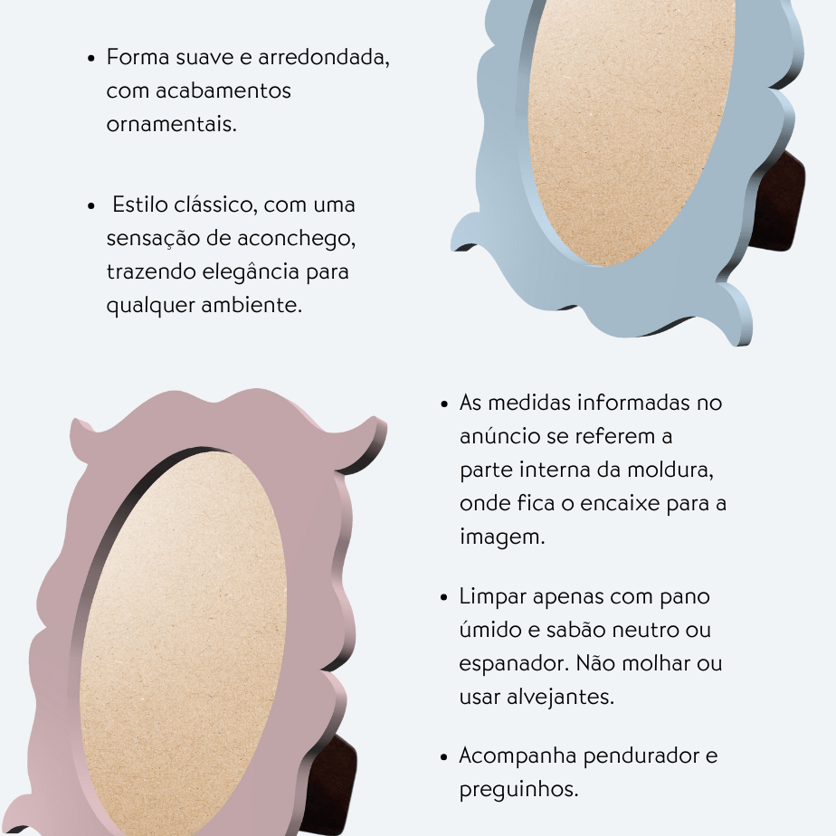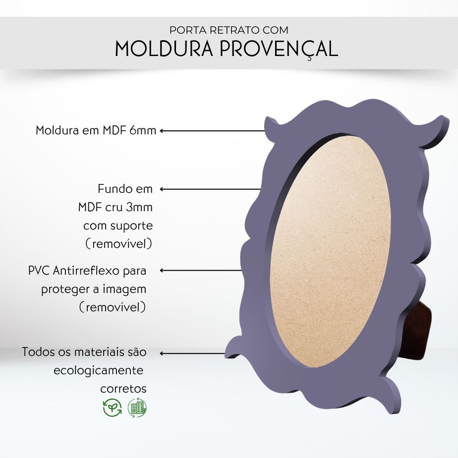 Porta Retrato Com Moldura Provençal Colorida Oval Em MDF 6mm Com Suporte em MDF e PVC Antirreflexo