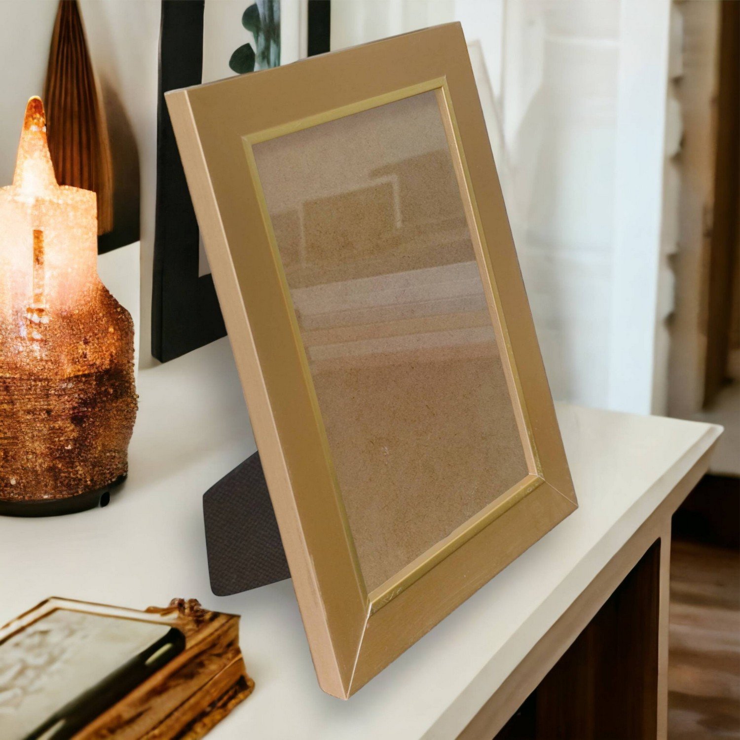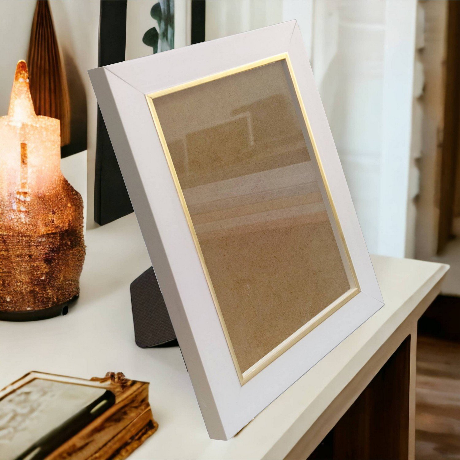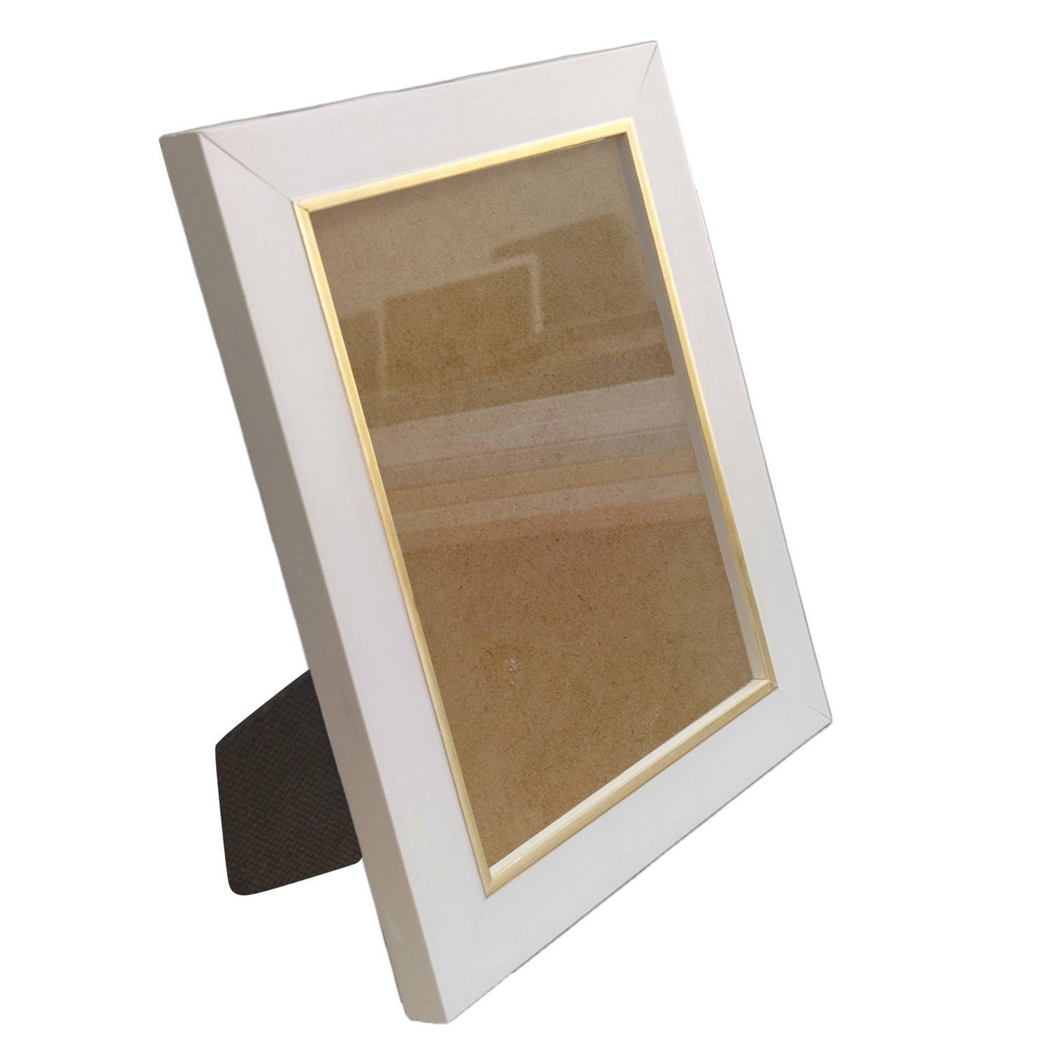 Porta Retrato de Moldura Gesso Laqueada com Filete Dourado para Quadros de parede. Essa moldura recebe uma leve camada de gesso sobre a madeira e depois é laqueada.