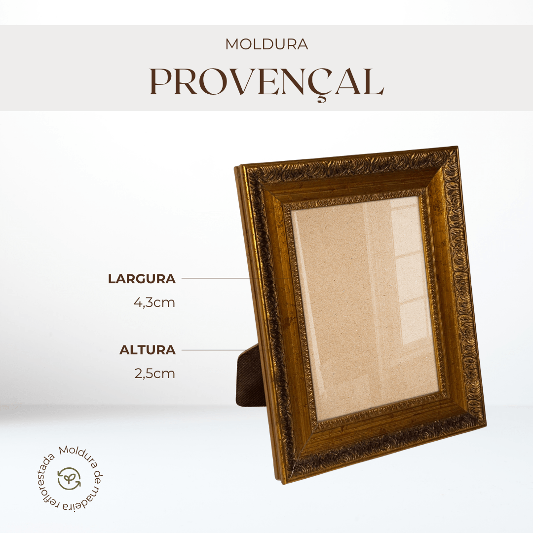 Se você busca uma moldura que valorize suas fotos, quadros ou artes decorativas, a moldura provençal com gravação ornamental é a escolha perfeita. Com um design inspirado no clássico estilo provençal, essa moldura possui detalhes gravados e acabamento decorativo que trazem charme, sofisticação e um toque vintage para qualquer ambiente. Seu relevo trabalhado cria profundidade e elegância, transformando uma simples foto ou arte em um verdadeiro destaque na decoração. O estilo provençal é conhecido por sua estética elegante, delicada e atemporal.