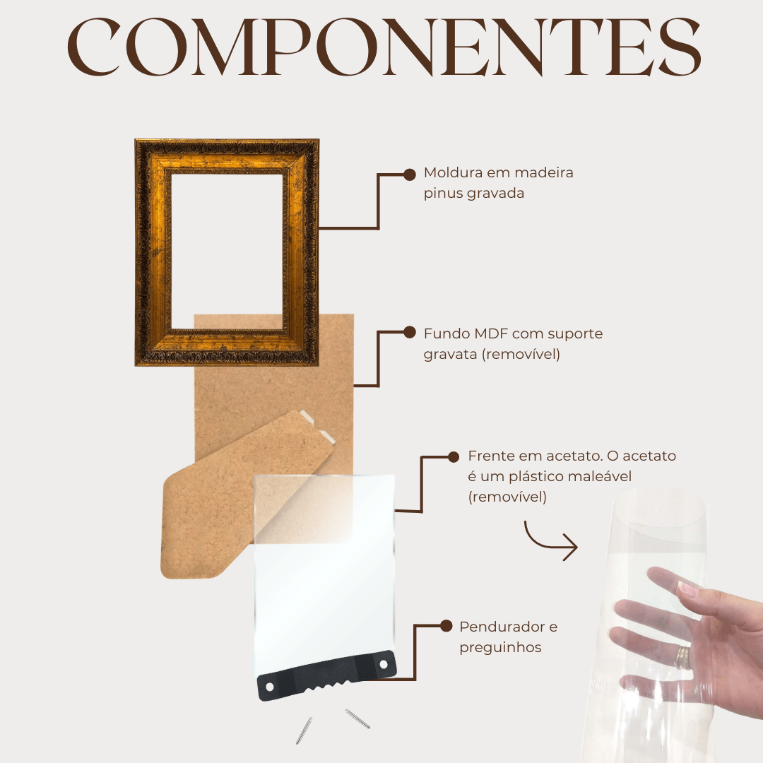 Graças ao seu acabamento rico em detalhes, essa moldura é perfeita para: