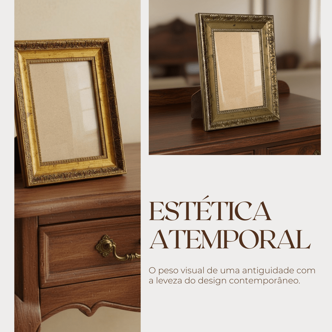 Ela cria um efeito visual que valoriza ainda mais a imagem ou obra exibida. O grande diferencial dessa moldura está em seus detalhes gravados e ornamentais, que remetem ao trabalho artesanal das molduras clássicas.