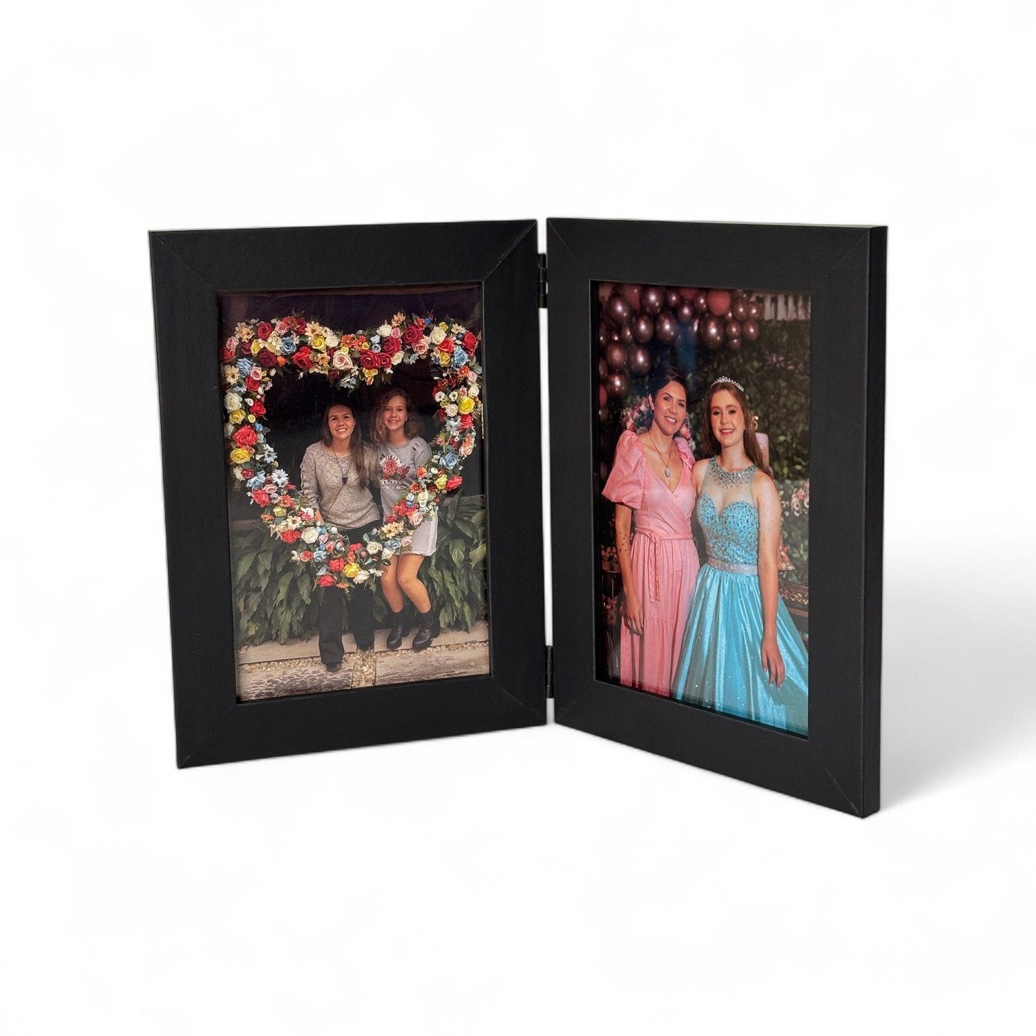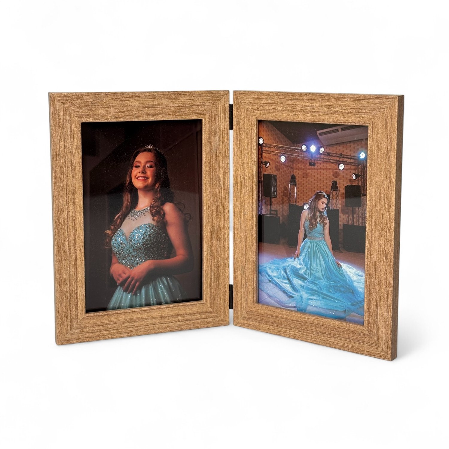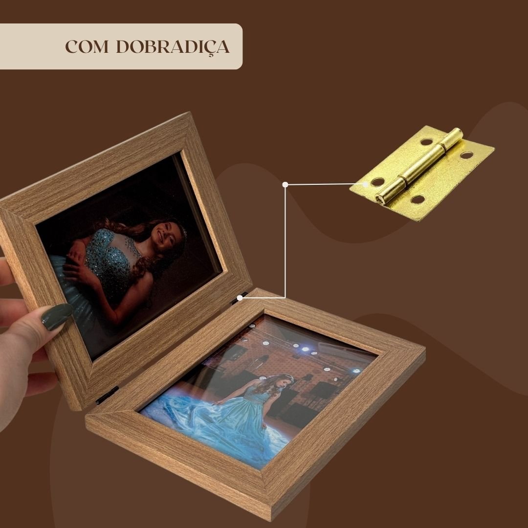 Porta-Retrato Duplo Articulado com Dobradiça Com Fundo em MDF e Frente em Acetato - 2x1